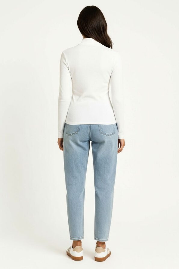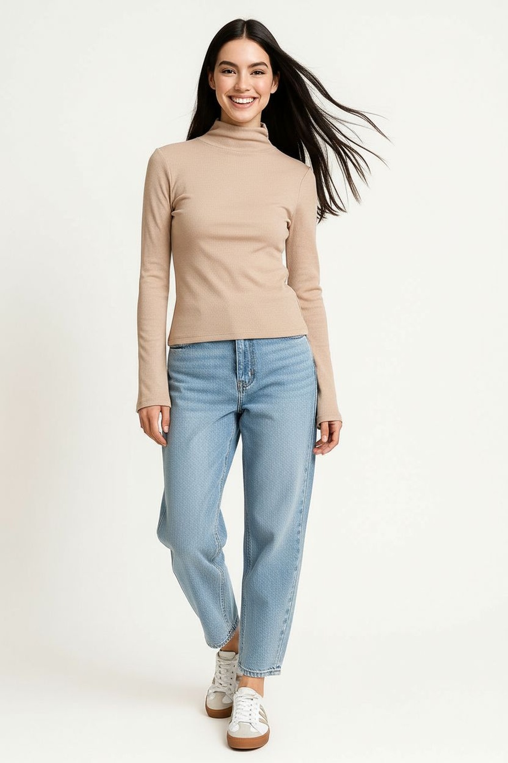 Playera de manga larga confeccionada en tejido rib que aporta elasticidad y suavidad al contacto con la piel, cuello alto plisado que brinda un acabado elegante y cómodo, corte ajustado que define la silueta y permite combinar fácilmente con distintas prendas, costuras reforzadas que aseguran durabilidad y ajuste perfecto durante el uso
