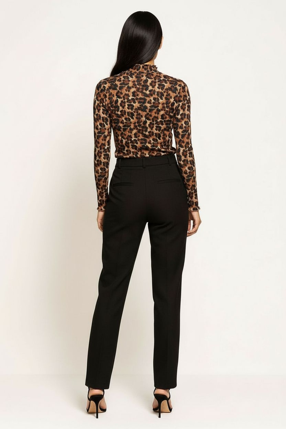 Playera de manga larga con cuello alto, confeccionada en tejido ligero y elástico, superficie con diseño continuo, ajuste ceñido que se adapta al contorno, terminaciones festonadas en cuello y mangas