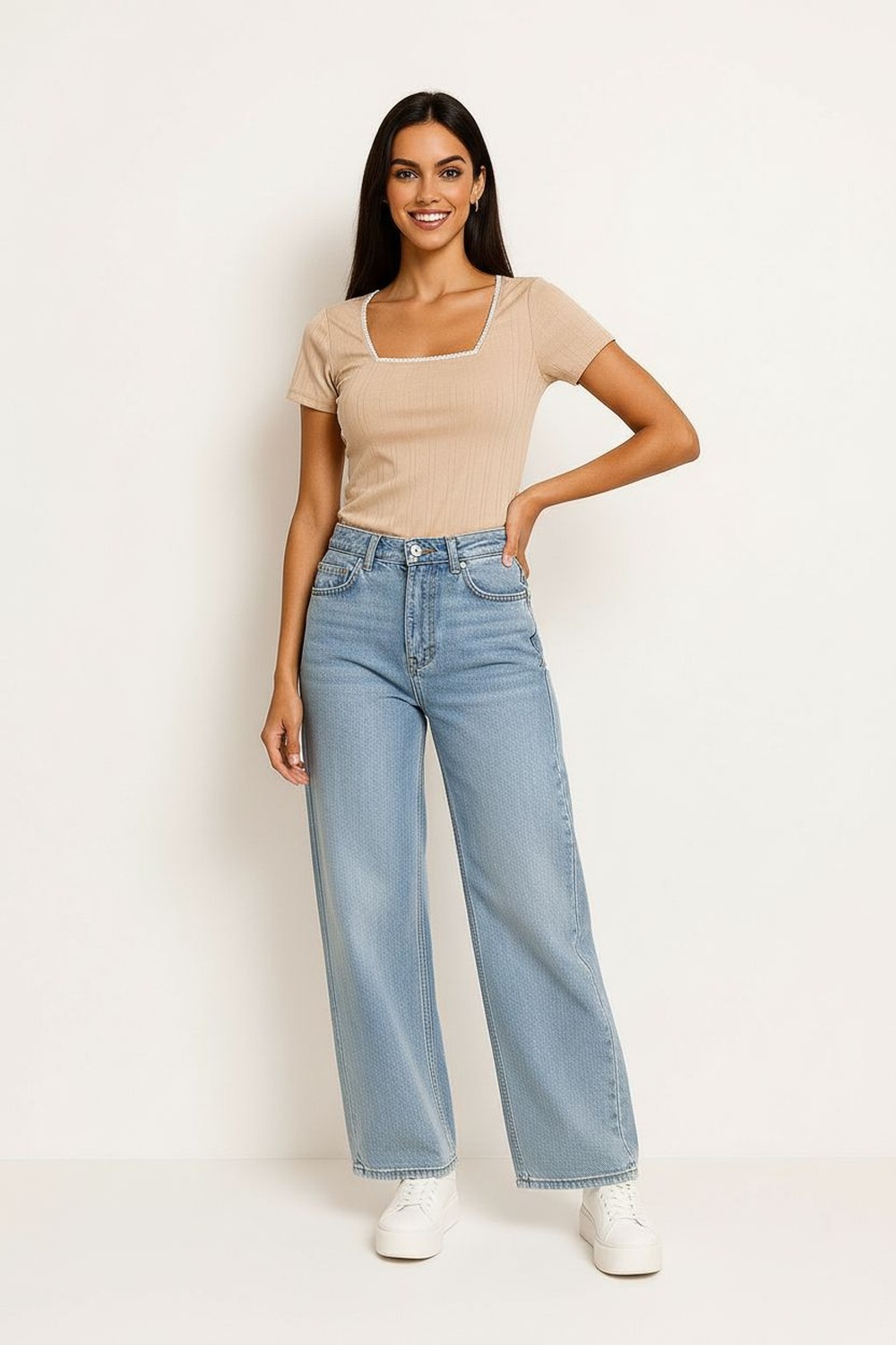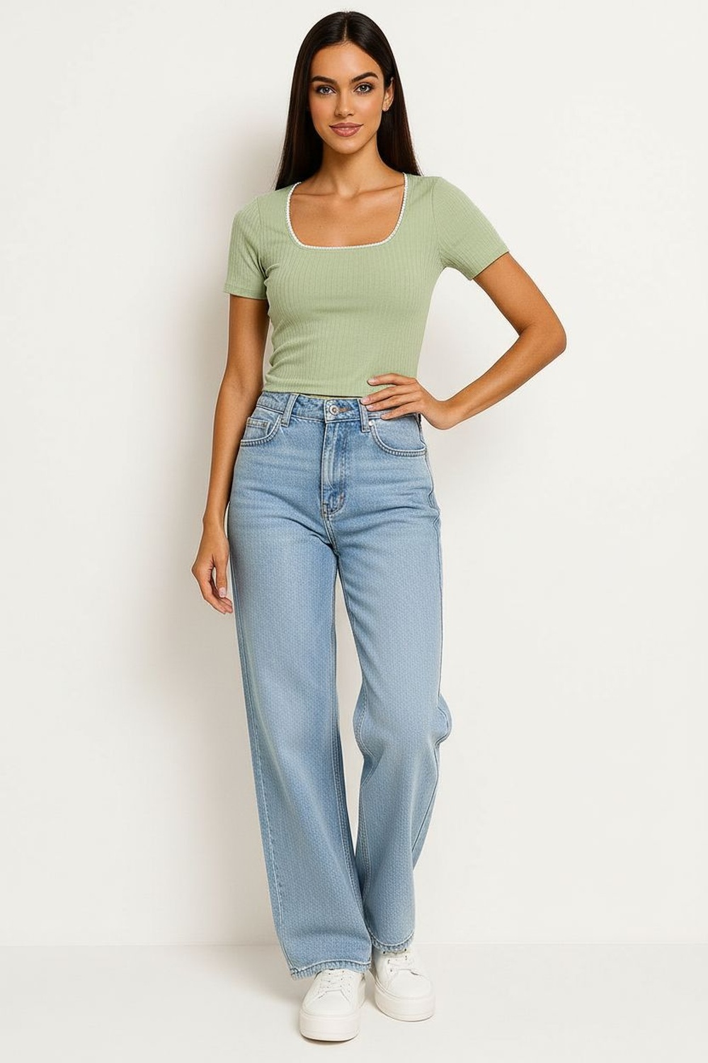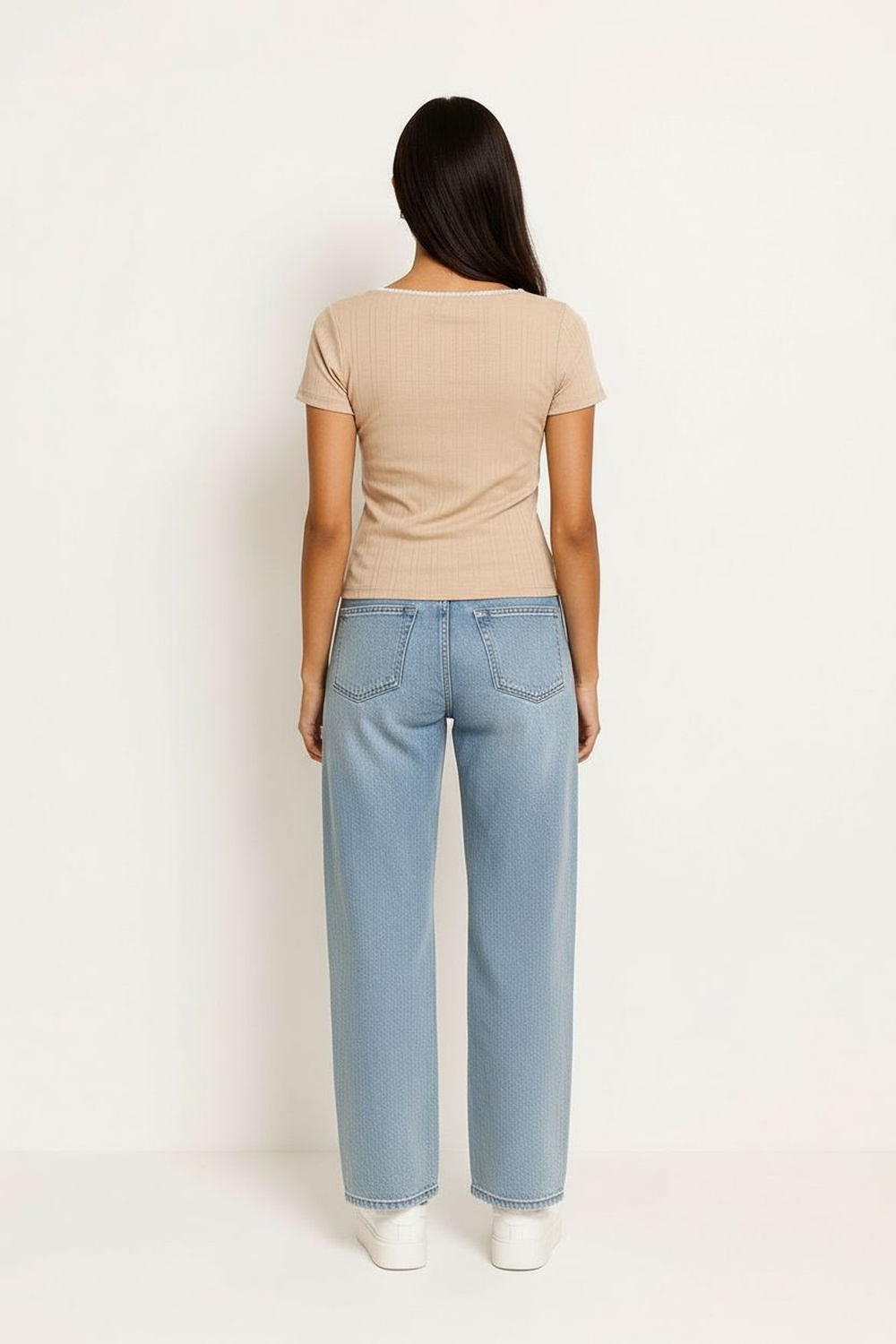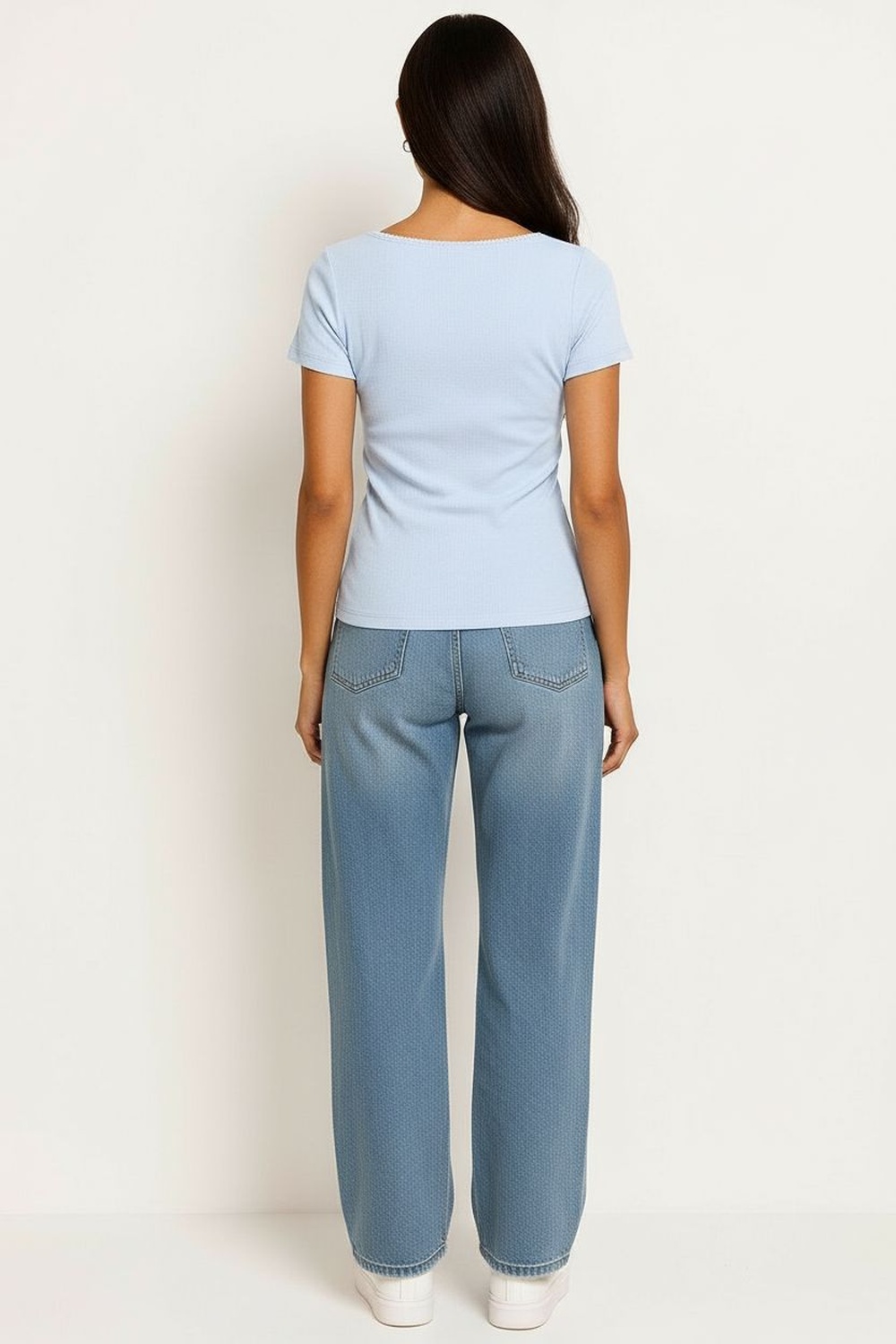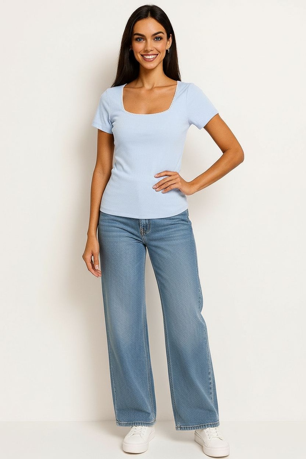 Playera de manga corta, escote cuadrado, ajuste al cuerpo, textura ligera, confección cómoda para uso diario