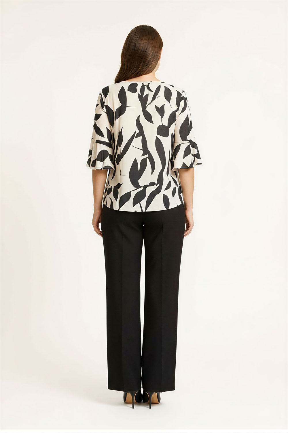 Playera de manga corta con pliegue superior que aporta volumen sutil, cuello redondo y detalle de collar decorativo incluido, confeccionada en tejido elástico con tacto suave y caída ligera para máxima comodidad