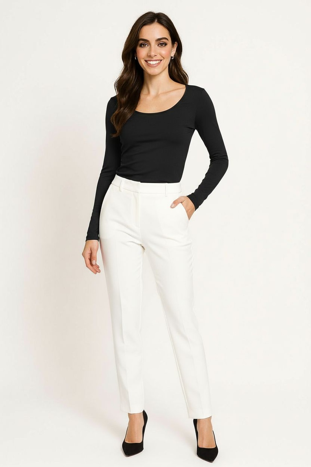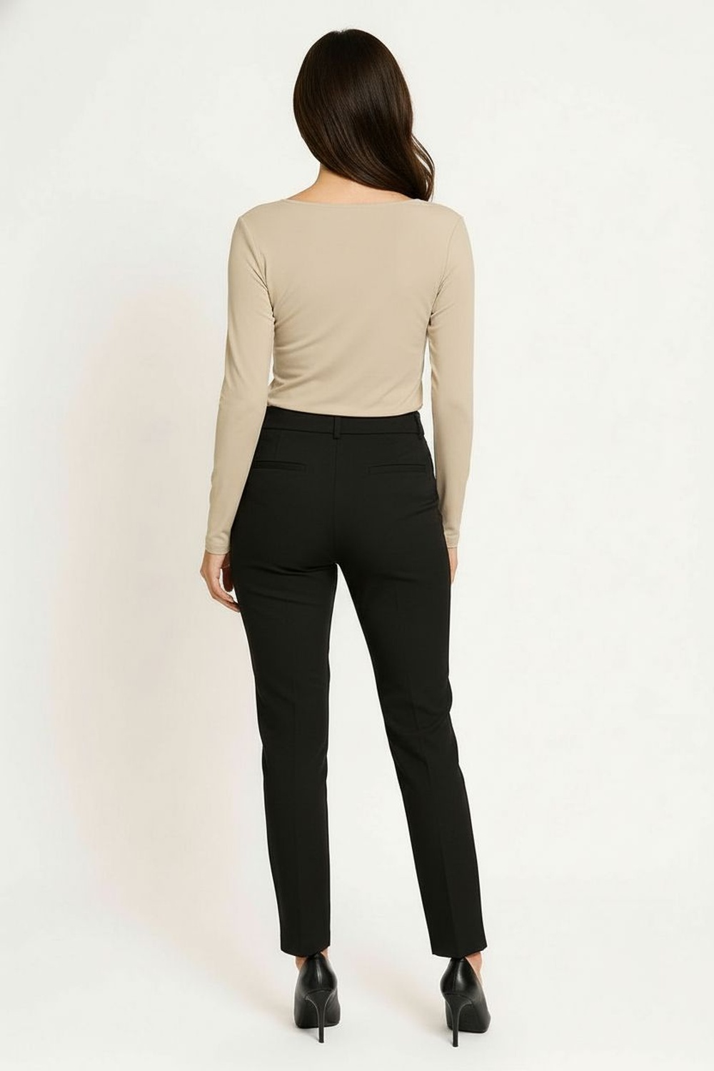 Falda lápiz de tiro alto con diseño ceñido que realza la figura, largo midi que aporta comodidad en cada paso, pretina estructurada que asegura un ajuste firme, aplicación decorativa al frente que suma detalle sofisticado, confección en tejido suave con ligera elasticidad que permite libertad de movimiento
