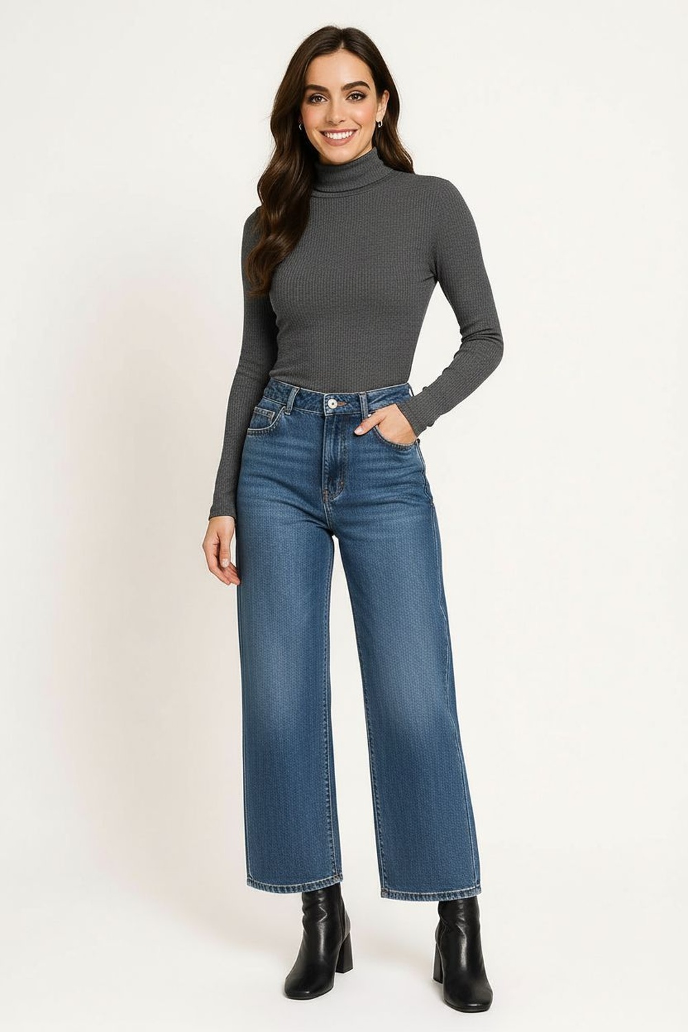Playera de cuello ruso con diseño básico de manga larga que se adapta fácilmente al cuerpo, tejido elástico que aporta suavidad y libertad de movimiento, estructura ligera y transpirable ideal para uso diario, acabados de costura limpia que mantienen un look pulido