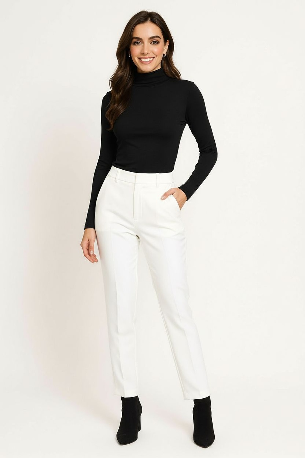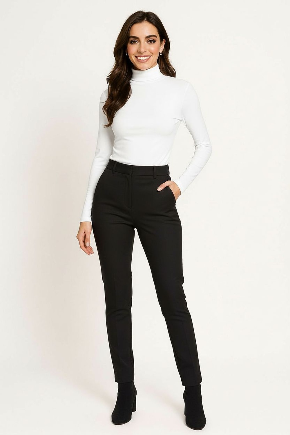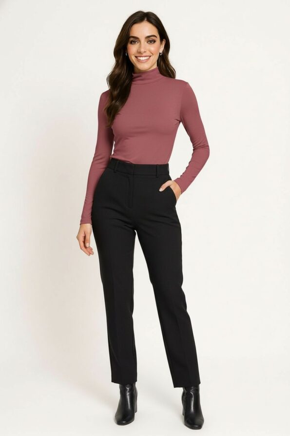 Playera de manga larga con cuello alto que aporta un estilo sofisticado y moderno, corte ajustado que define la figura sin perder comodidad, confección en tejido elástico de tacto suave que se adapta al cuerpo y permite libertad de movimiento, acabados limpios que realzan la silueta y complementan looks de temporada