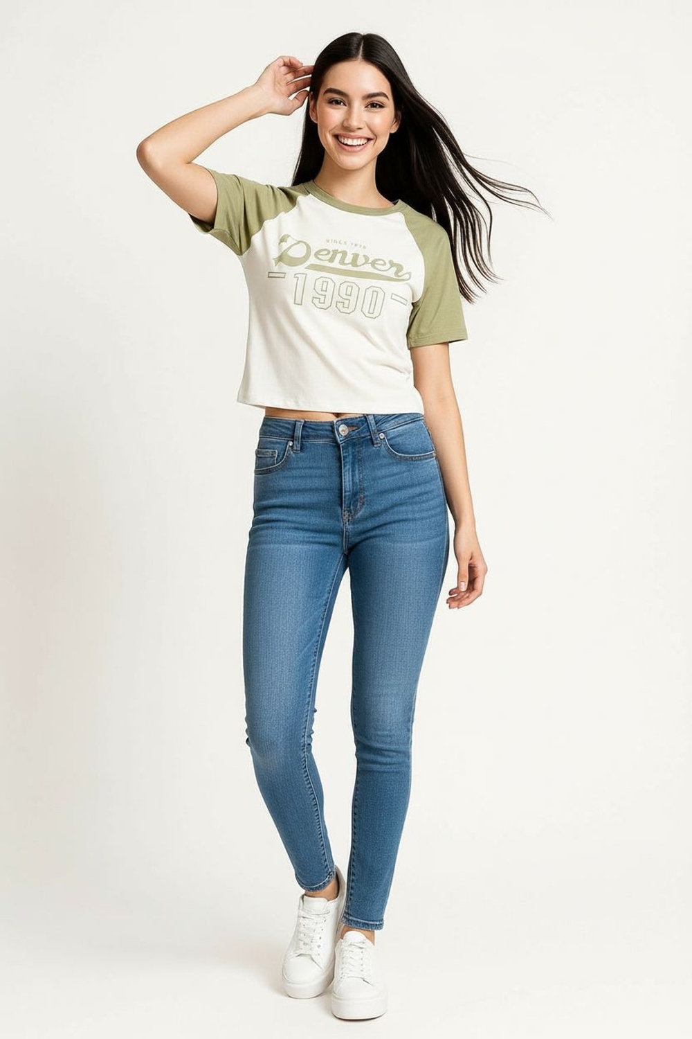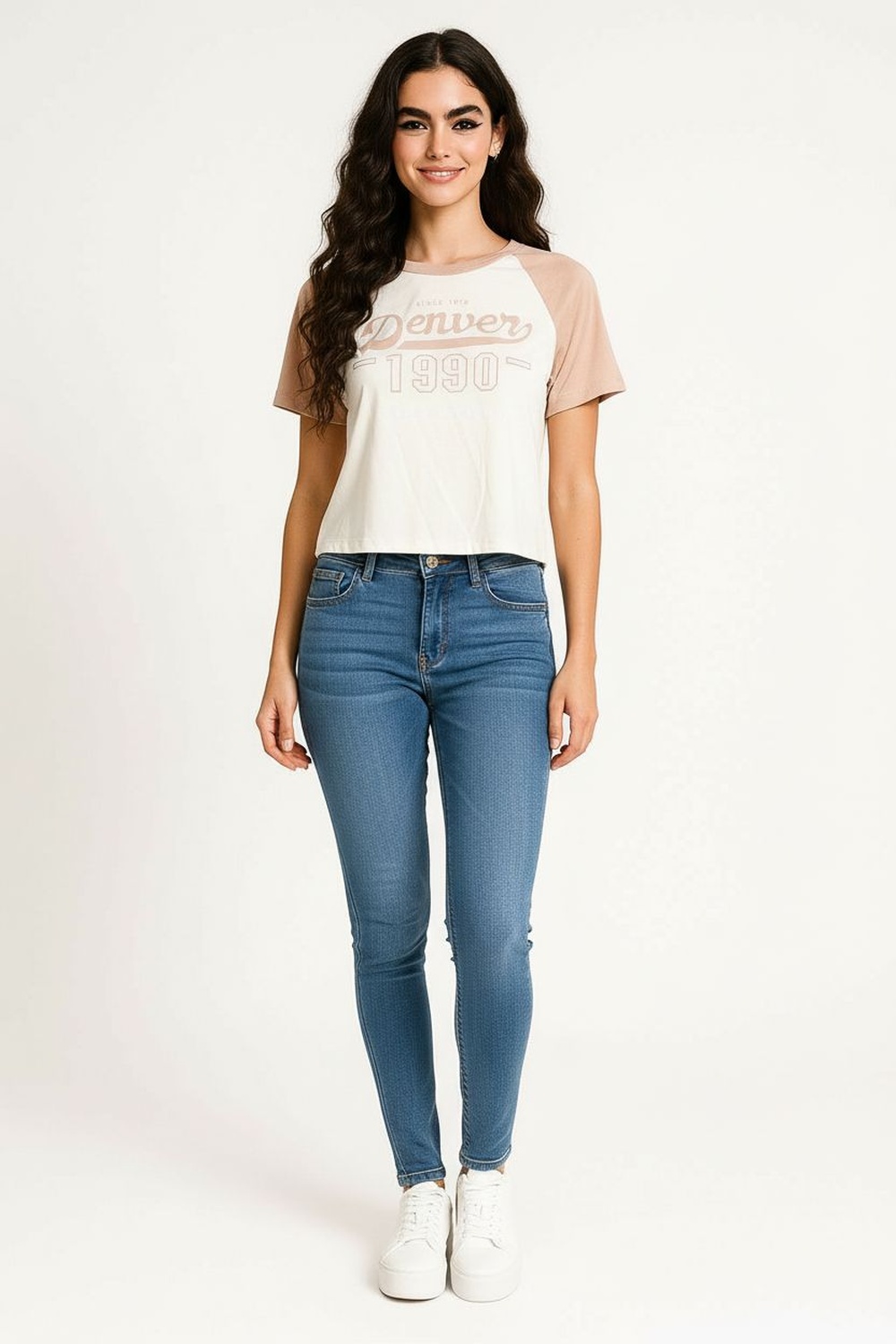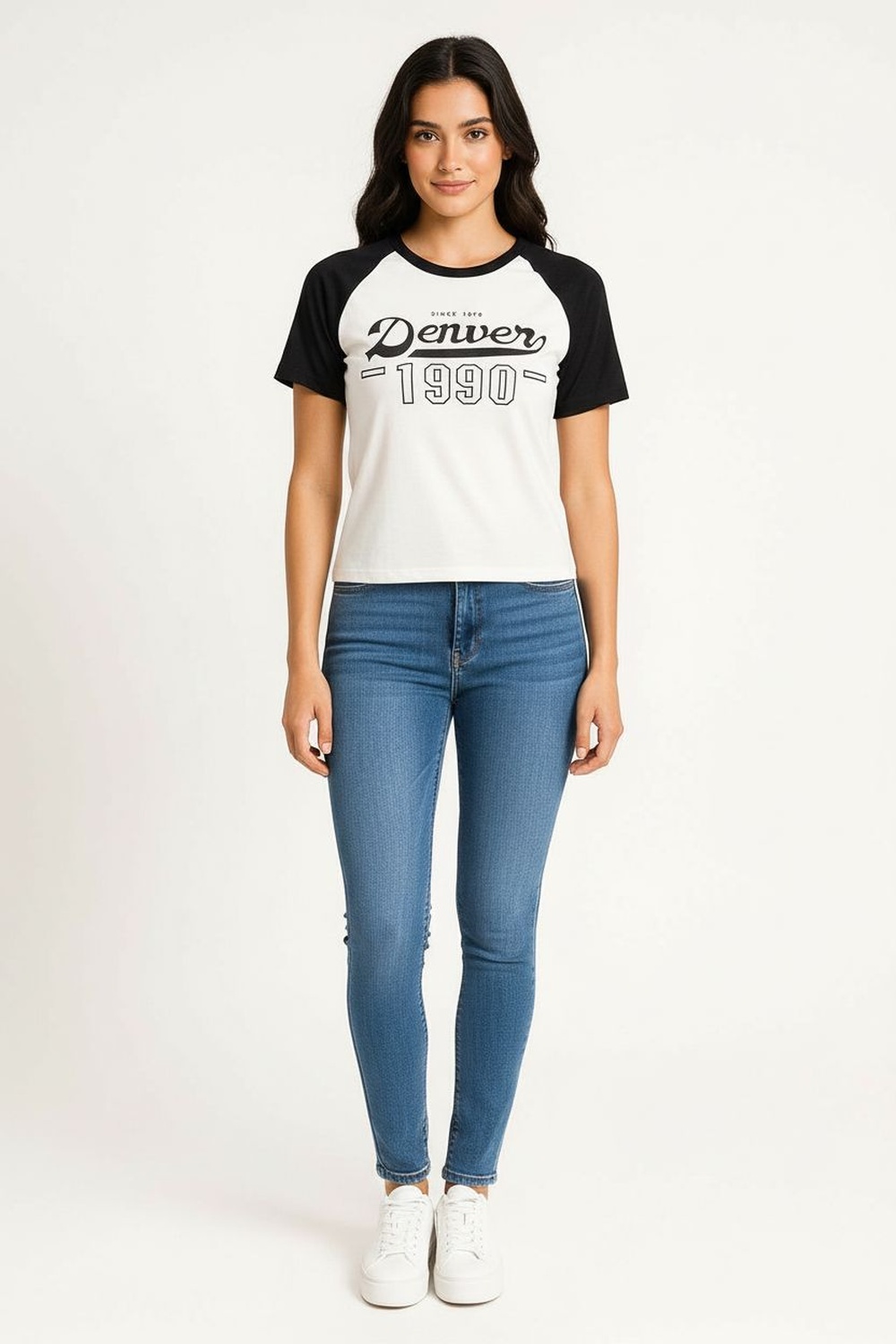 Playera de manga corta tipo ranglan con cuello redondo, corte recto con ajuste cómodo, largo clásico a la cadera, confección en tejido de algodón con tacto suave y buena transpiración