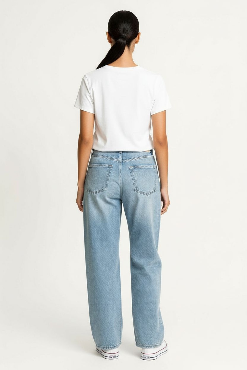 Playera de manga corta con cuello redondo y aplicación decorativa al frente, estructura recta y ajuste cómodo al cuerpo