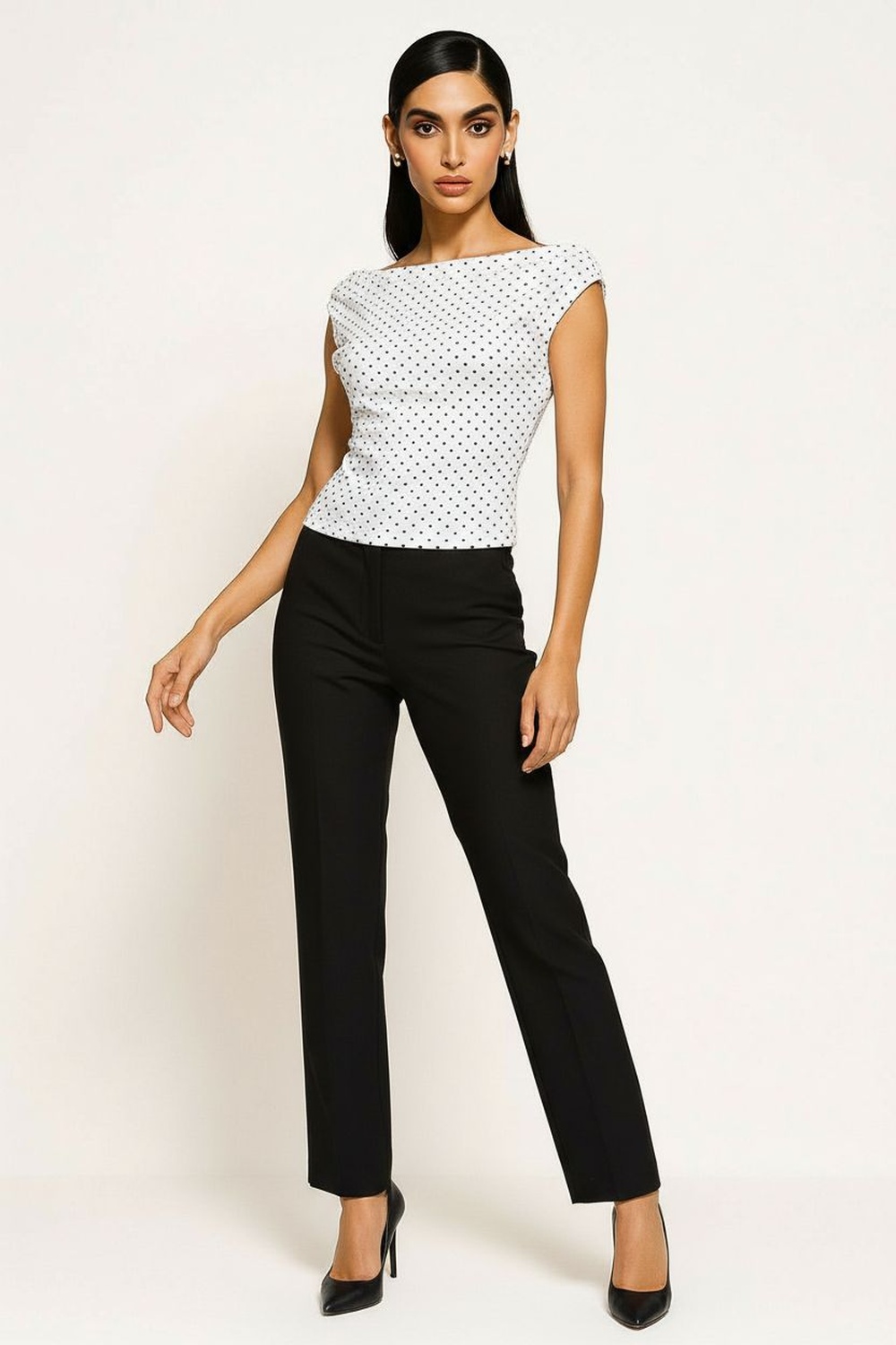 Playera sin manga de corte entallado con drapeado lateral que aporta volumen controlado, escote redondeado con terminación suave, confección en tejido elástico que se adapta al contorno, largo medio que permite uso continuo, diseño pensado para comodidad y ajuste natural
