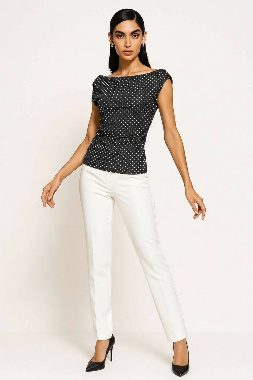 Playera asimétrica con diseño drapeado en hombro que aporta caída suave y ajuste al cuerpo, escote amplio que estiliza la parte superior, confección en tejido ligero con elasticidad que brinda comodidad durante el día, largo a la cadera que permite un ajuste equilibrado y favorece la silueta