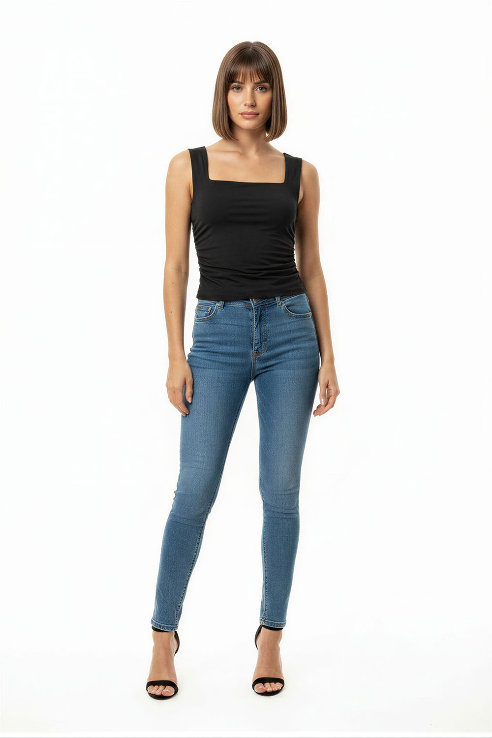 Blusa tipo corset con tirantes y escote recto con estructura ajustada que define la silueta, diseño con paneles que brindan soporte y mejor ajuste, terminado inferior con ligero vuelo que aporta equilibrio visual, confección ligera que permite comodidad durante el uso