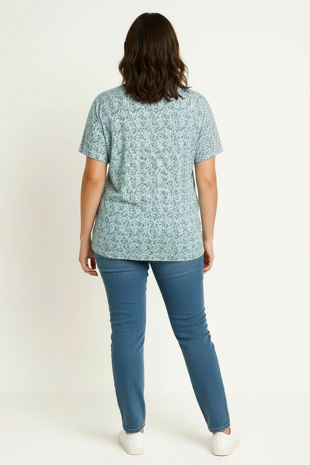 Blusa de manga corta con escote redondo adornado con jaretas ajustables que aportan un detalle delicado, abertura posterior con botón que facilita el ajuste, corte recto que favorece distintas siluetas y brinda comodidad, confeccionada en tela ligera y suave que ofrece frescura y movilidad, ideal para outfits casuales y de oficina en temporada
