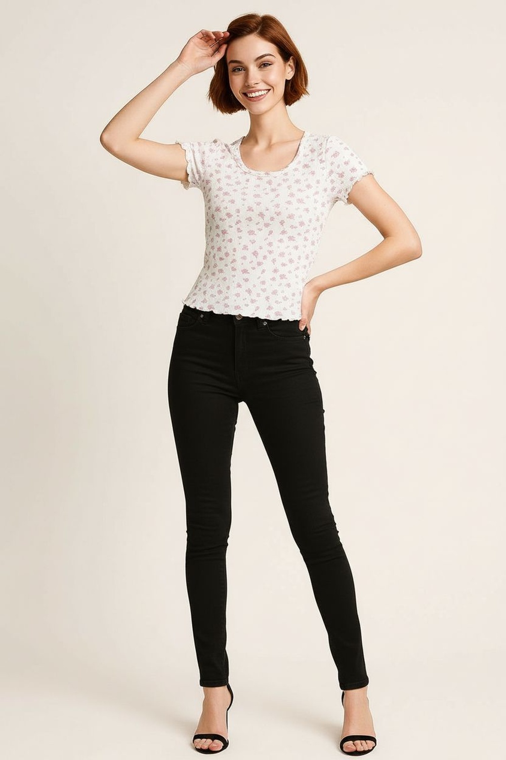 Playera de manga corta con cuello redondo y detalle estampado distribuido en toda la superficie, corte semi ajustado que define la silueta sin perder comodidad, confección en tejido ligero de tacto suave, largo a la cadera con terminado ondulado en mangas y bajo que aporta un toque distintivo, estructura flexible que facilita el movimiento