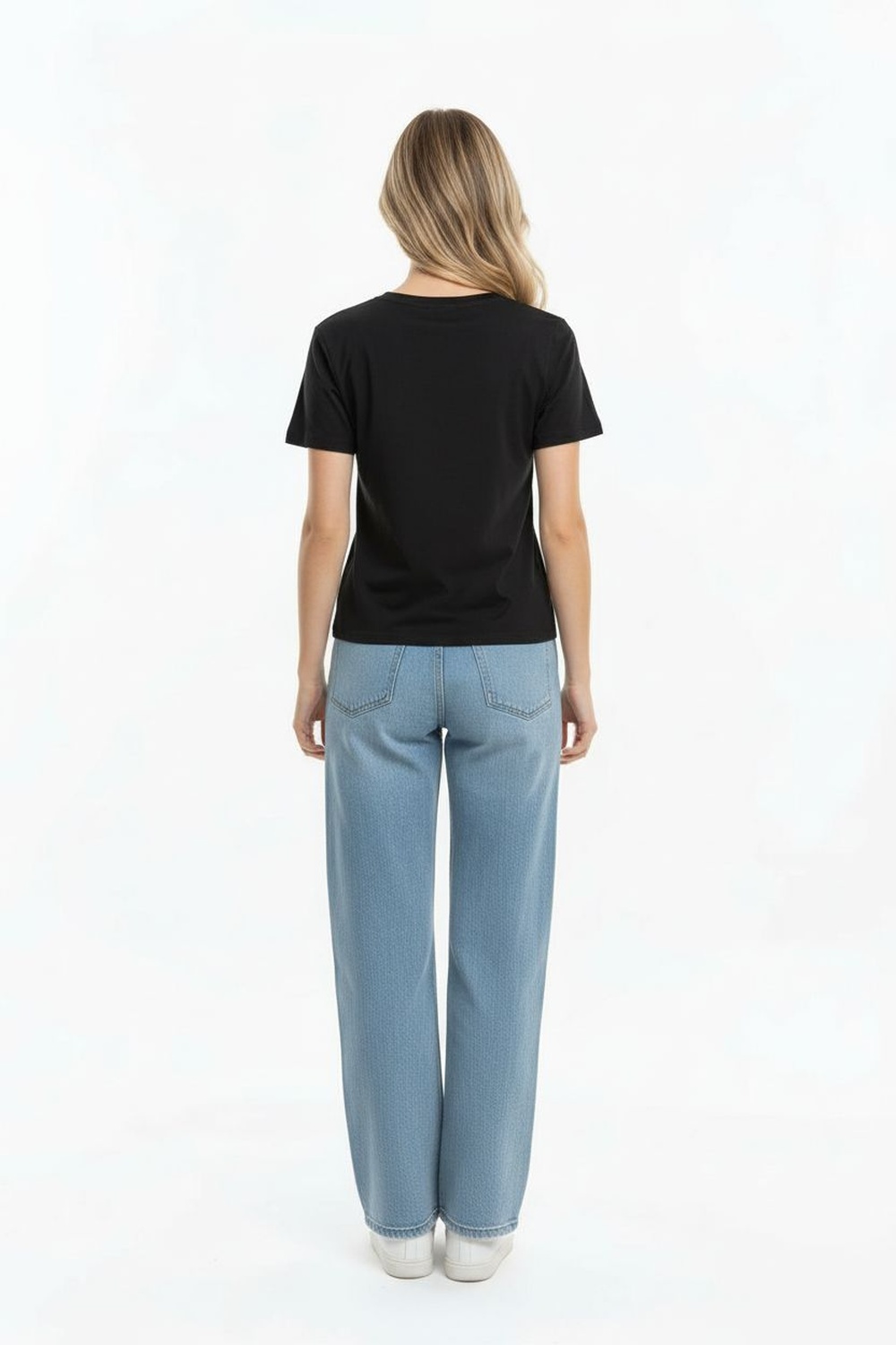Playera de manga corta con cuello redondo, tejido rib que se adapta al cuerpo, frente con aplicación decorativa y detalle sutil, estructura ligera y cómoda para uso diario
