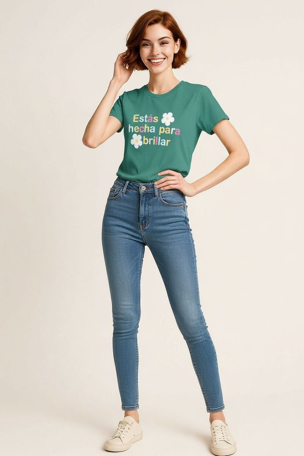 Playera de manga corta, cuello redondo, silueta recta, gráfico decorativo al frente, confección ligera, acabado cómodo para uso diario