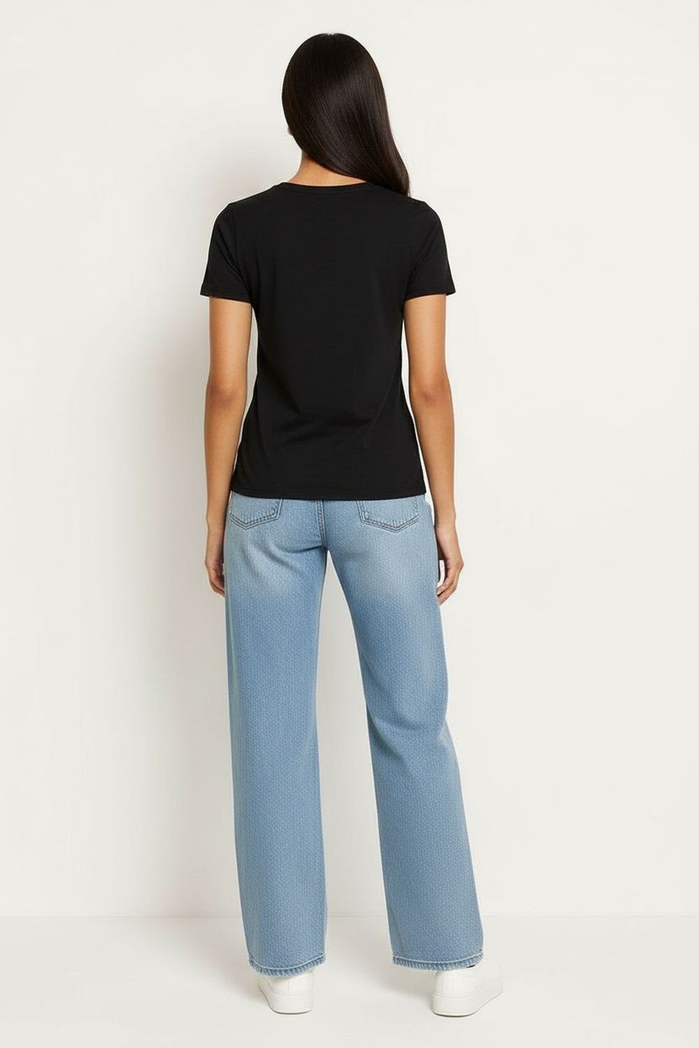 Playera de manga corta con silueta ligeramente entallada que define la figura, escote redondo amplio con acabado delicado, tejido suave con textura ligera que brinda comodidad prolongada, diseño repetido con figuras pequeñas que aportan detalle discreto y atractivo visual, confección pensada para acompañar actividades cotidianas con libertad de movimiento