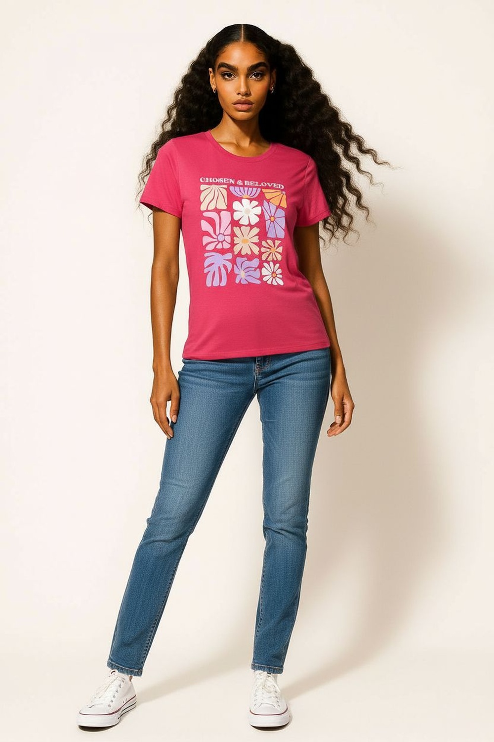 Playera de manga corta con cuello redondo y ajuste regular, confección en tejido ligero que proporciona comodidad prolongada, diseño frontal con gráficos geométricos integrados de acabado uniforme, estructura suave que se adapta al cuerpo, terminaciones limpias que conservan la forma
