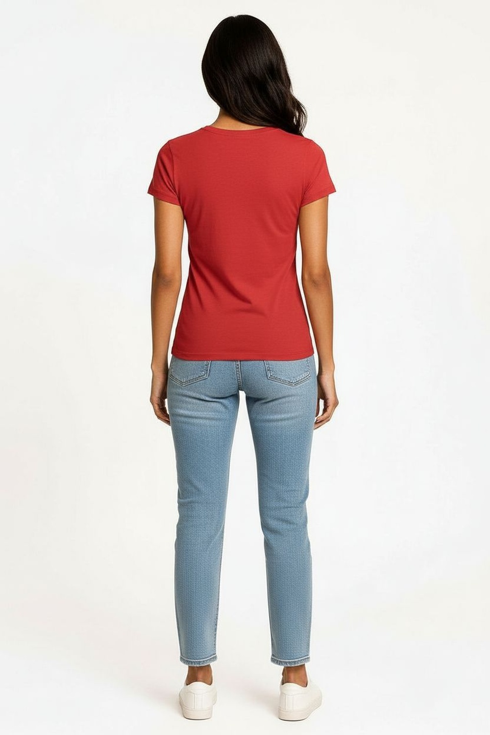 Playera de corte recto con cuello redondo clásico que brinda ajuste cómodo, manga corta de largo regular que permite movilidad, largo a la cadera que aporta proporción equilibrada, confección en tejido suave al tacto con buena transpirabilidad, acabado uniforme que mantiene la forma tras el uso continuo