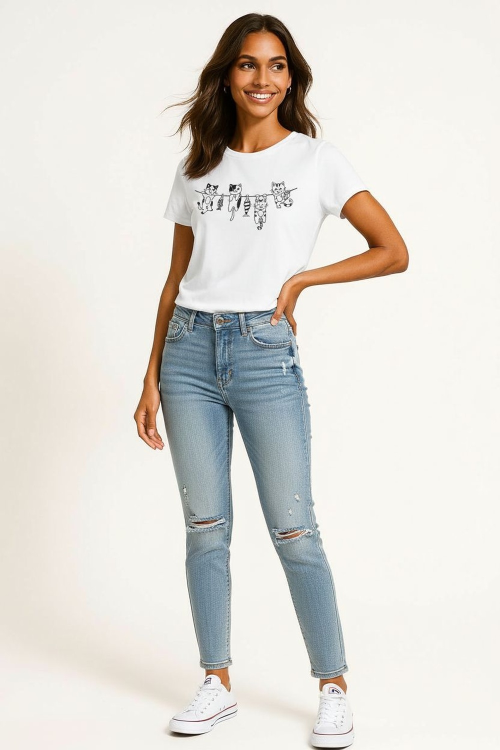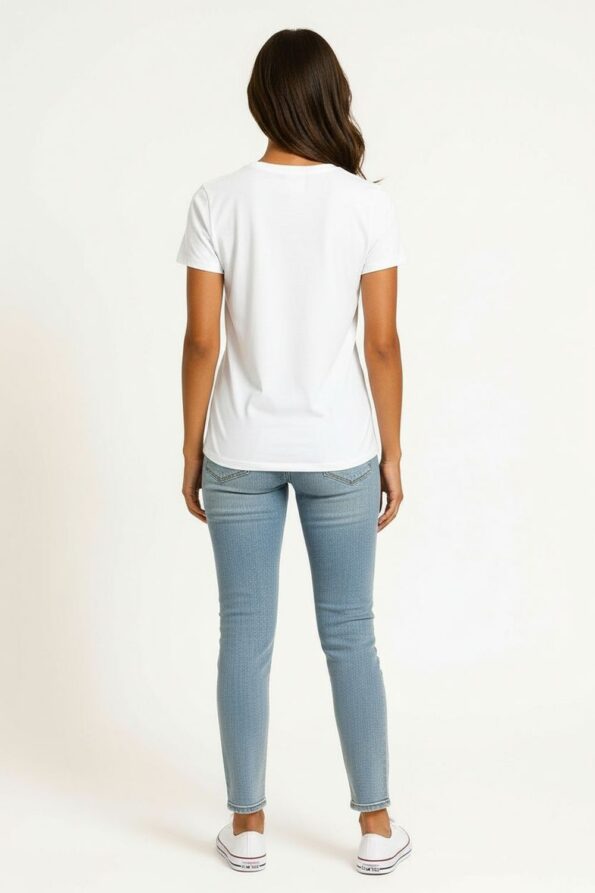Playera básica cuello redondo con accesorio de perlas y manga corta