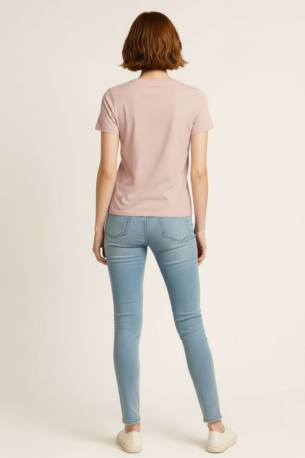 Playera de manga corta con corte recto y ajuste cómodo, cuello redondo con terminado firme que mantiene su forma, tejido suave de textura ligera que permite transpiración, aplicación central con figura decorativa que aporta detalle delicado y atractivo visual, estructura versátil diseñada para brindar confort durante todo el día