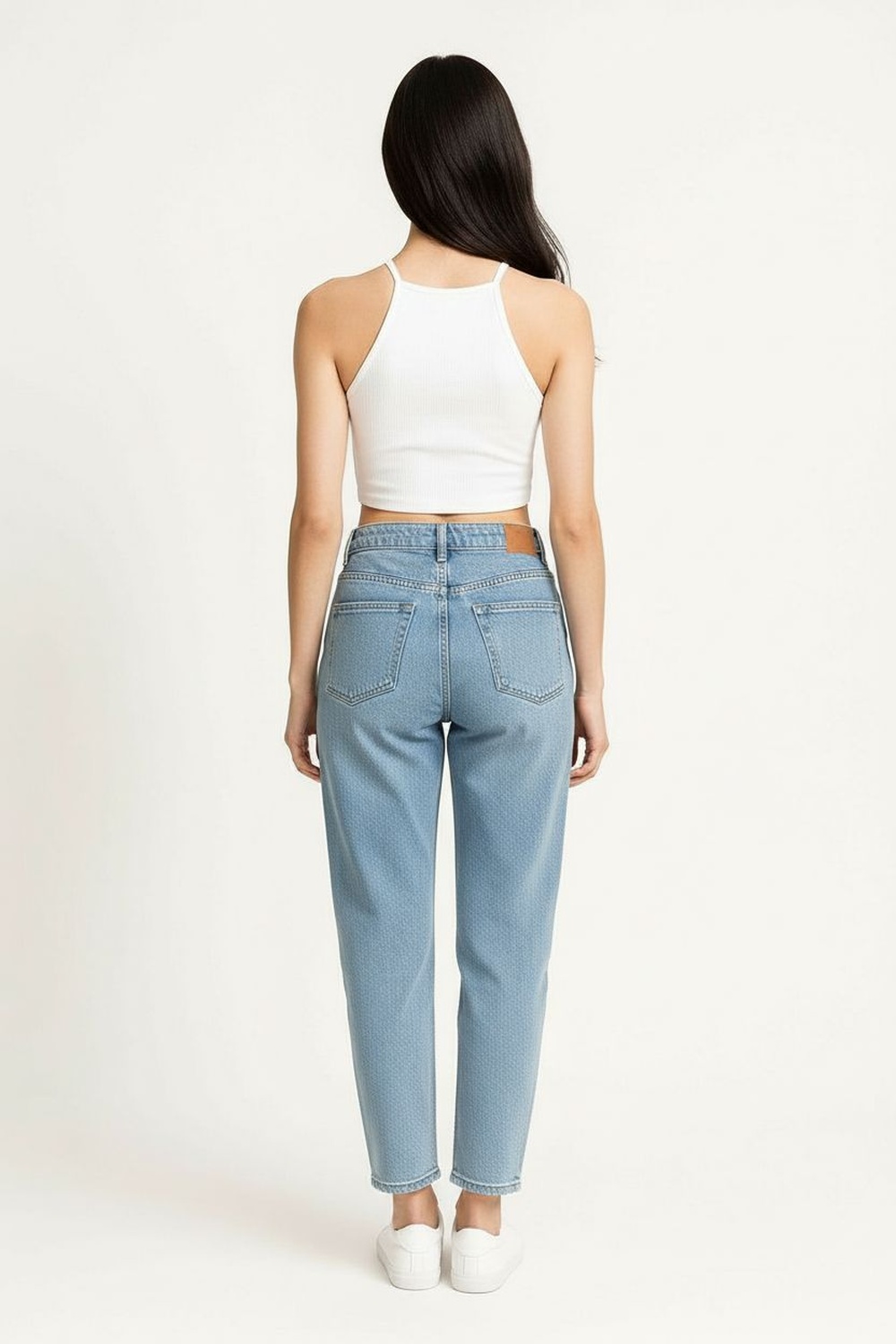 Playera tipo top con escote halter que realza la parte superior, diseño sin mangas que aporta frescura, largo a la cintura con ajuste cómodo, confección en tejido acanalado de tacto suave que se adapta al cuerpo, terminaciones limpias que brindan una apariencia cuidada y actual