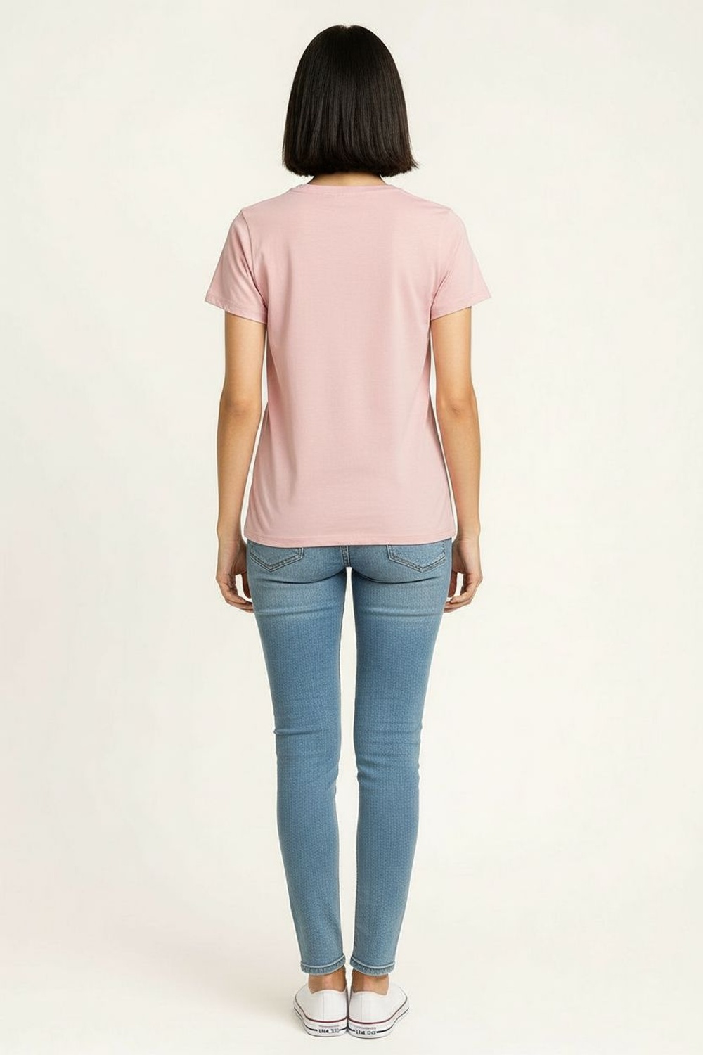 Playera de manga corta con cuello redondo clásico, corte recto que brinda ajuste cómodo, superficie con aplicación frontal integrada al tejido, confección ligera que favorece la transpiración y uso continuo