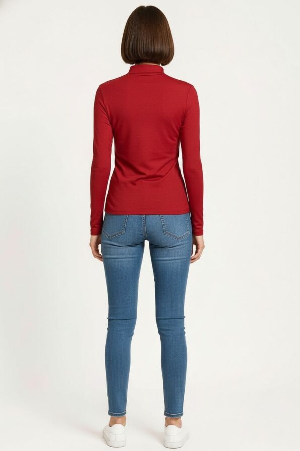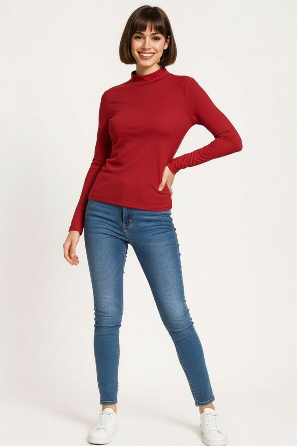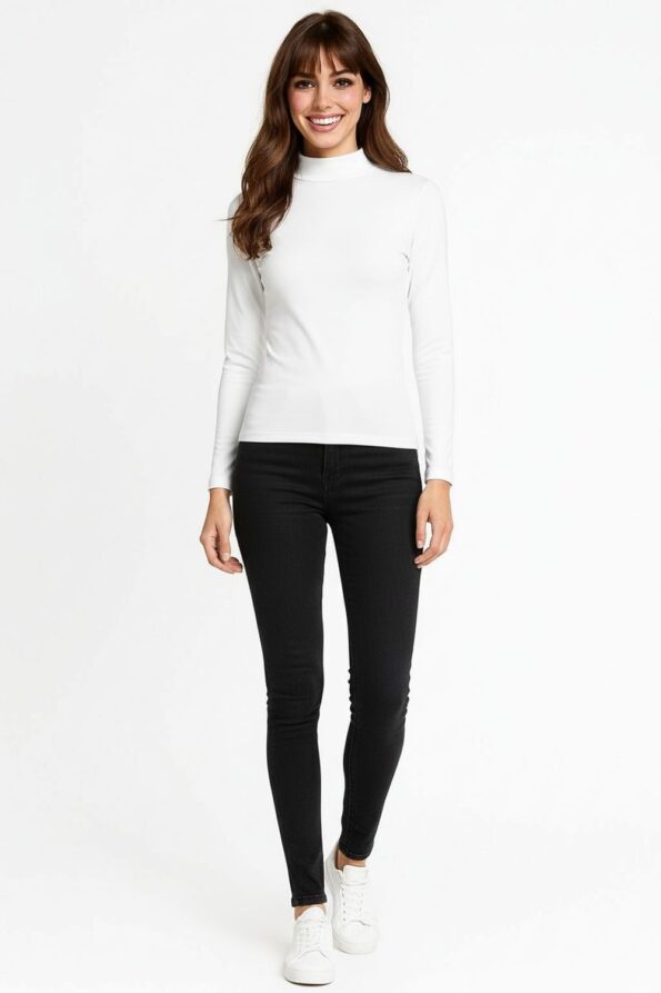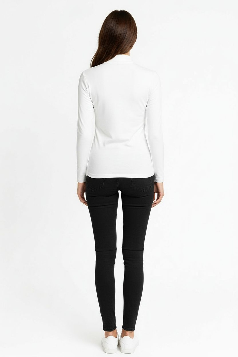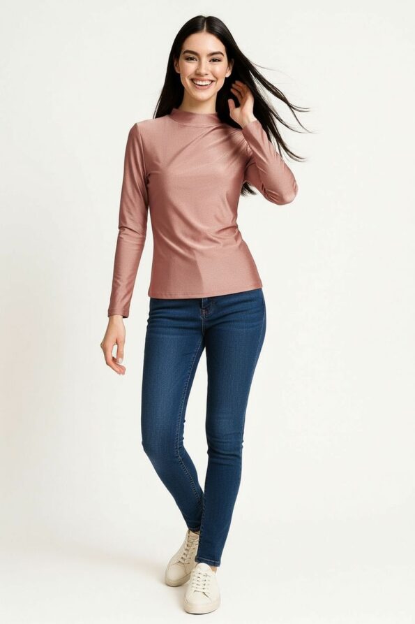 Playera de manga larga con cuello alto, confeccionada en tejido de lycra suave que ofrece elasticidad y ajuste perfecto al cuerpo, diseño liso de corte clásico que aporta versatilidad para distintas combinaciones, costuras reforzadas que garantizan resistencia y comodidad en cada uso, acabado limpio con tacto ligero
