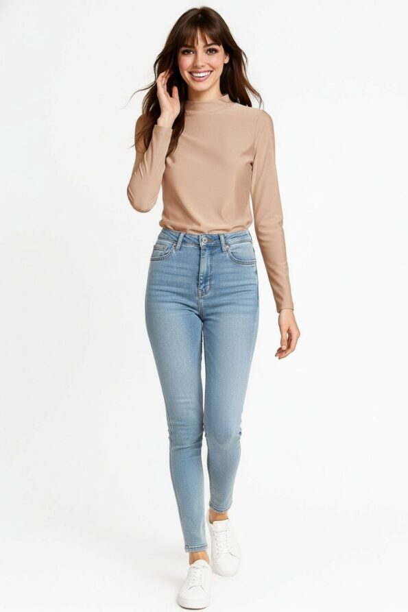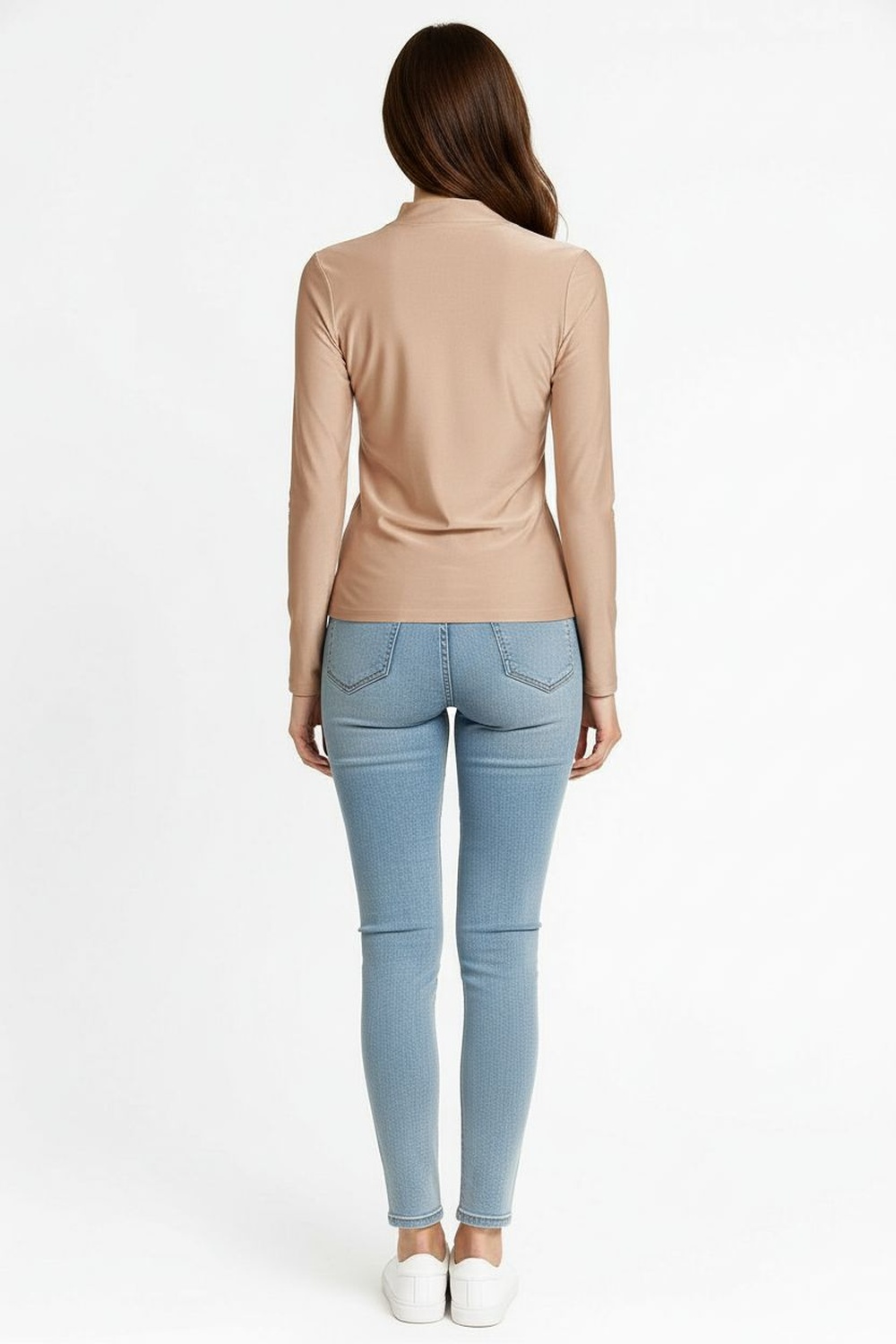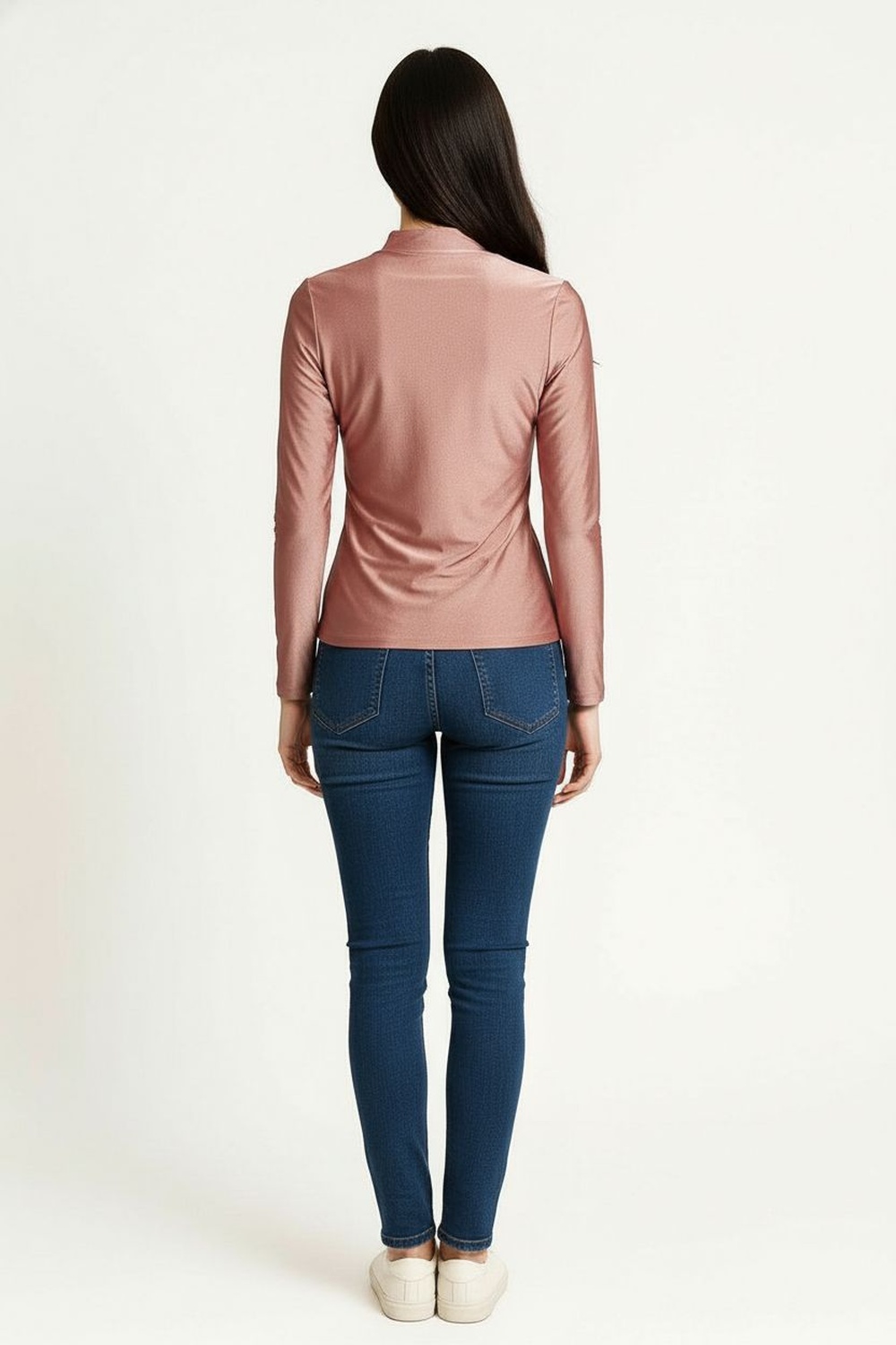 Playera de manga larga con cuello alto, confeccionada en tejido de lycra suave que ofrece elasticidad y ajuste perfecto al cuerpo, diseño liso de corte clásico que aporta versatilidad para distintas combinaciones, costuras reforzadas que garantizan resistencia y comodidad en cada uso, acabado limpio con tacto ligero