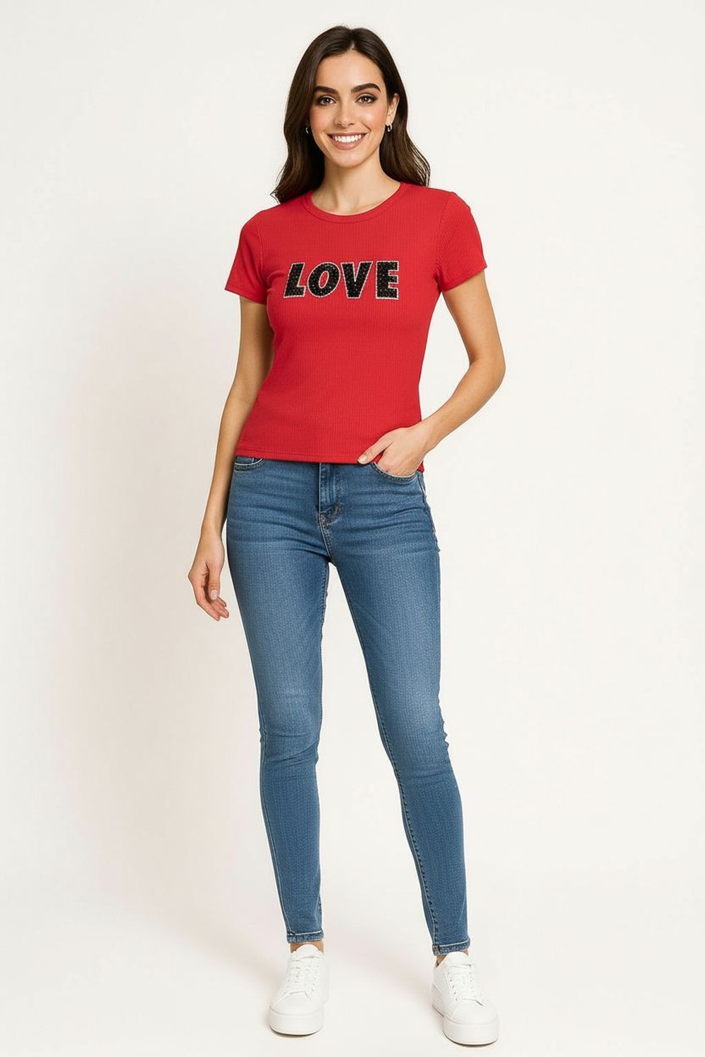 PLAYERA LOVE CON APLICACIÓN DE PIEDRAS