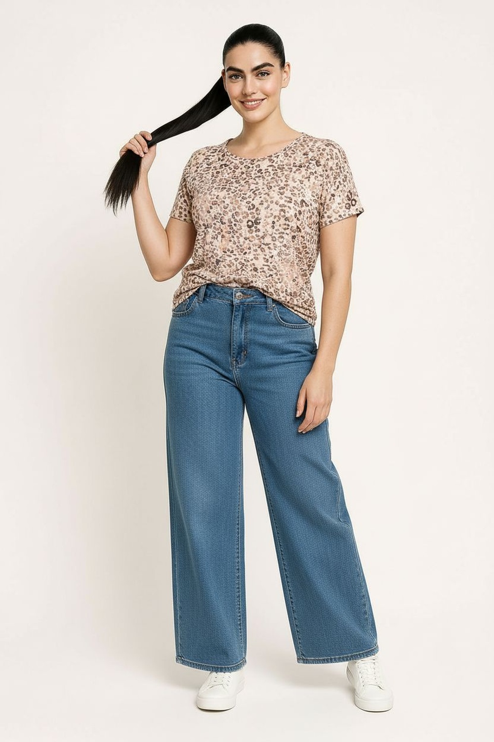Playera de manga corta con escote redondo y acabado reforzado en cuello, corte recto que brinda ajuste cómodo al torso, diseño tipo animal que aporta un toque en tendencia, confección en tejido suave y ligero que permite transpirabilidad, largo a la cadera que ofrece cobertura y versatilidad para uso diario
