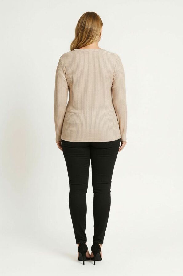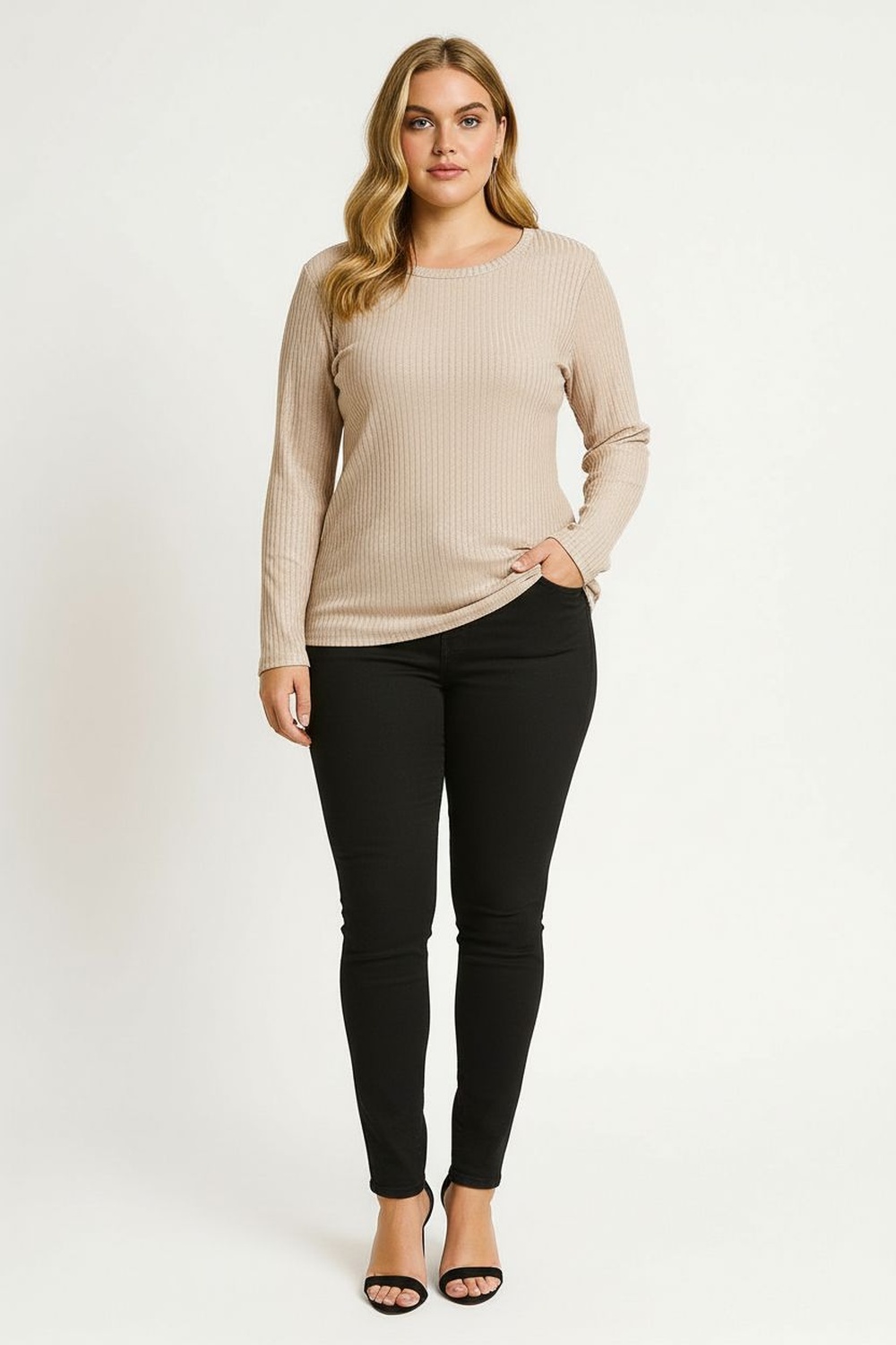 Playera de manga larga confeccionada en tela acanalada que aporta textura y elasticidad para un ajuste cómodo, cuello redondo clásico que brinda versatilidad en su uso, corte recto que favorece la silueta y otorga practicidad, dobladillo recto que mantiene la estructura definida de la prenda, confección en tejido ligero que asegura confort y resistencia durante el uso diario