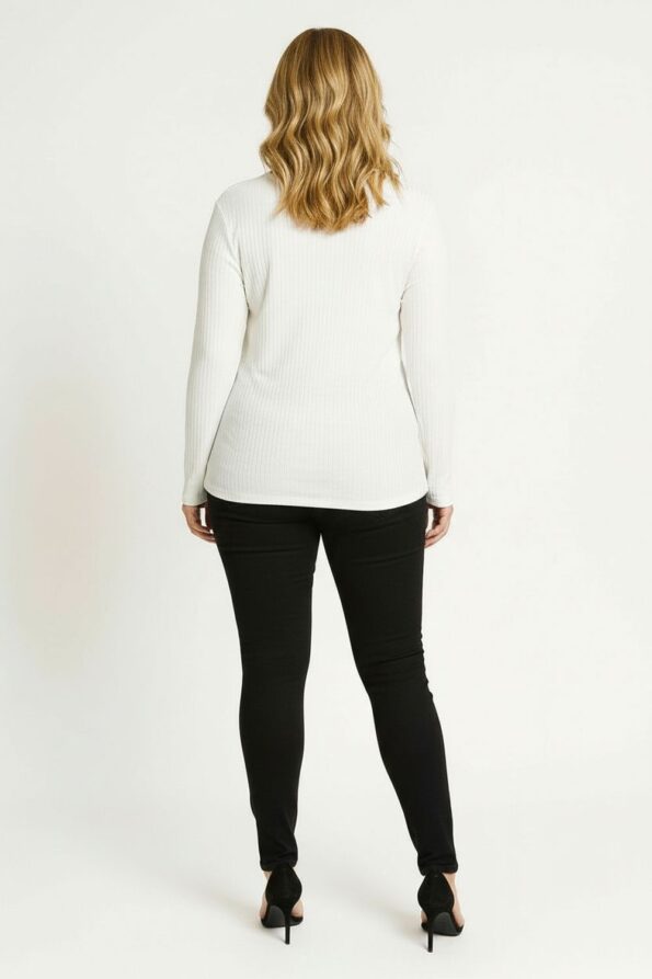 Playera cuello alto con manga corta que aporta un estilo pulido y moderno, tejido canalé que estiliza y se adapta al cuerpo, prenda versátil, diseño básico imprescindible