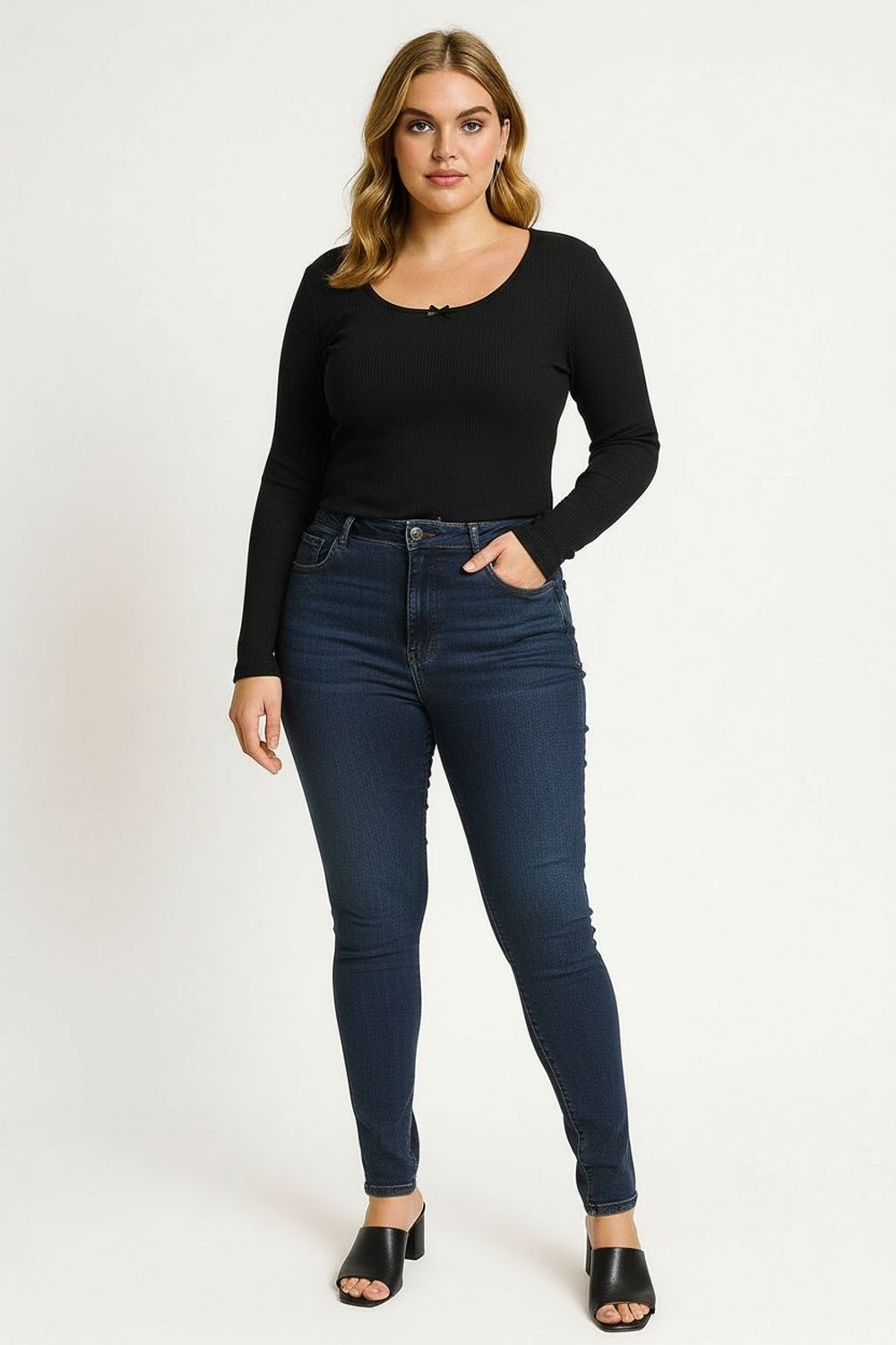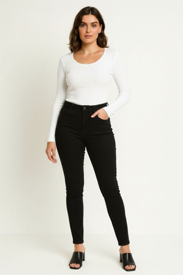 Playera de manga larga confeccionada en tejido rib que aporta elasticidad y comodidad, cuello redondo con acabado delicado que realza la sencillez de la prenda, largo clásico que favorece la versatilidad en diferentes combinaciones, tela ligera que se ajusta suavemente al cuerpo brindando frescura y libertad de movimiento