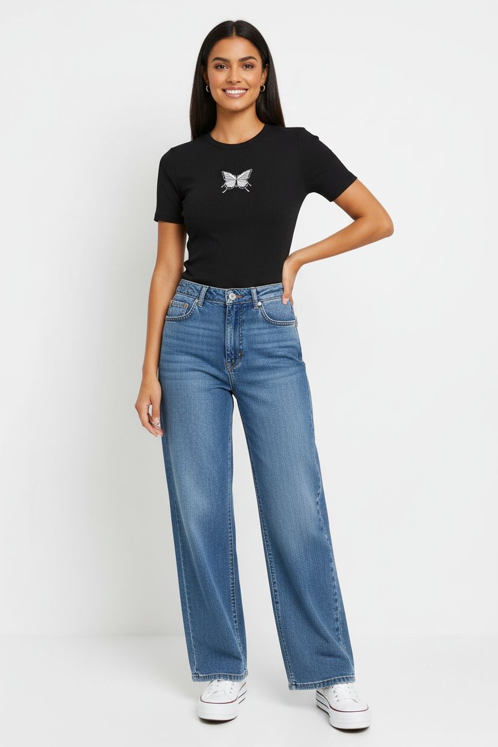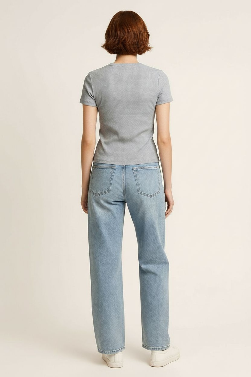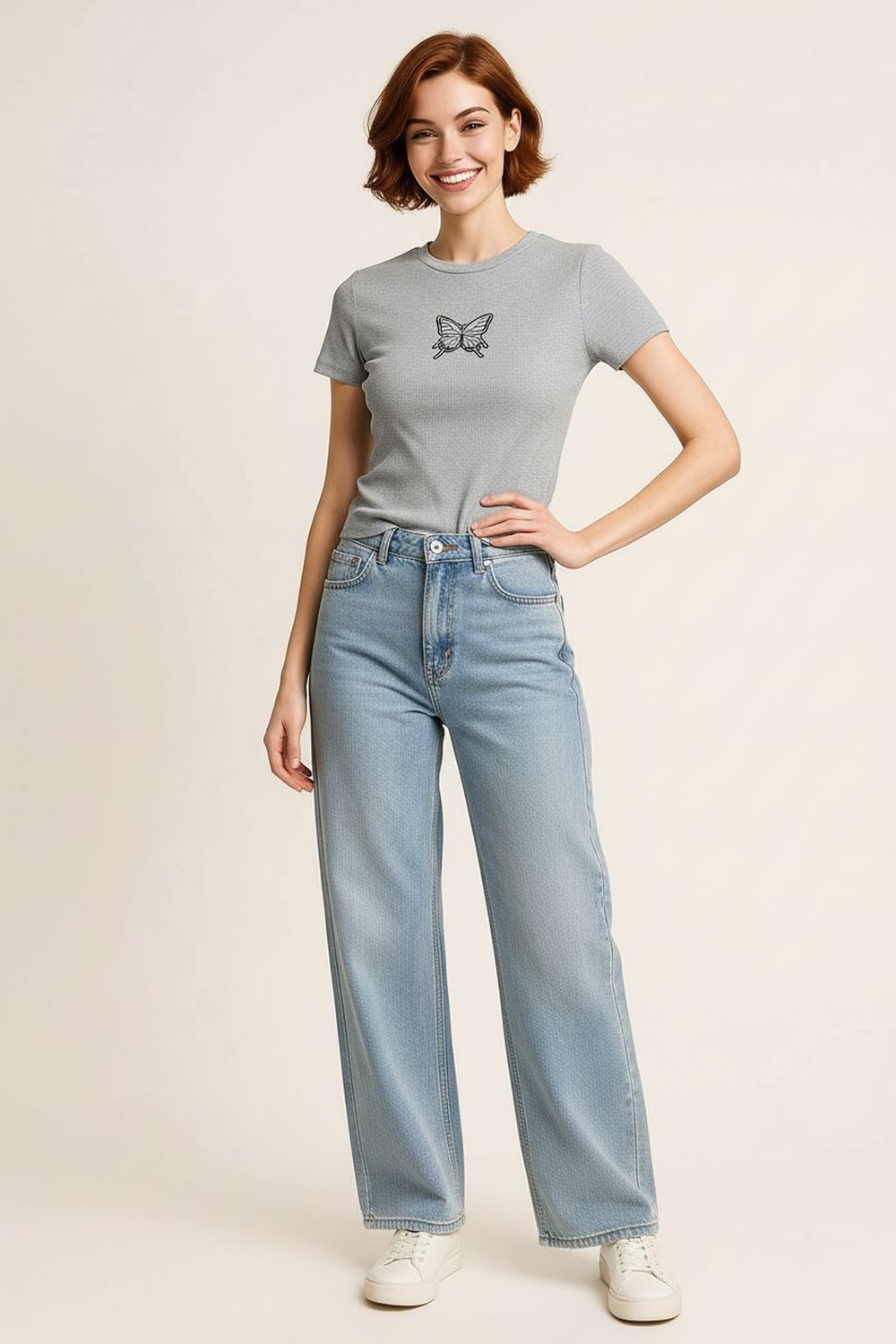 Playera de manga corta con corte recto y ajuste cómodo, cuello redondo con terminado firme que mantiene su forma, tejido suave de textura ligera que permite transpiración, aplicación central con figura decorativa que aporta detalle delicado y atractivo visual, estructura versátil diseñada para brindar confort durante todo el día