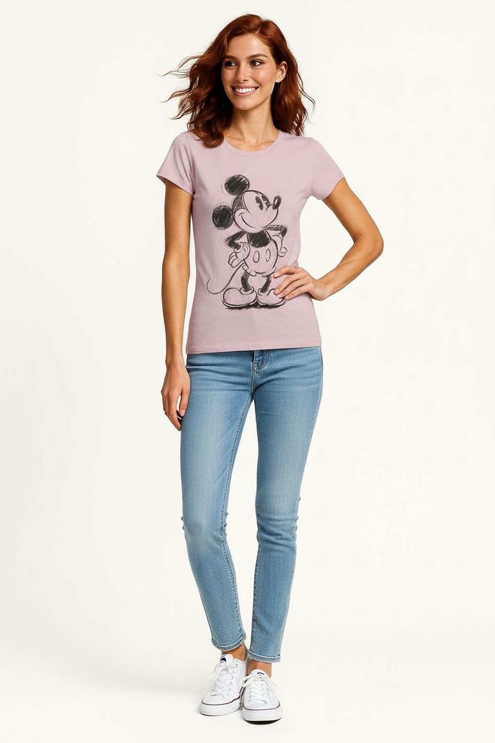 Playera de manga corta con cuello redondo reforzado, diseño frontal con ilustración gráfica de personaje emblemático, corte recto con ajuste cómodo, largo a la cadera con caída natural, confección en tejido ligero y flexible para uso diario