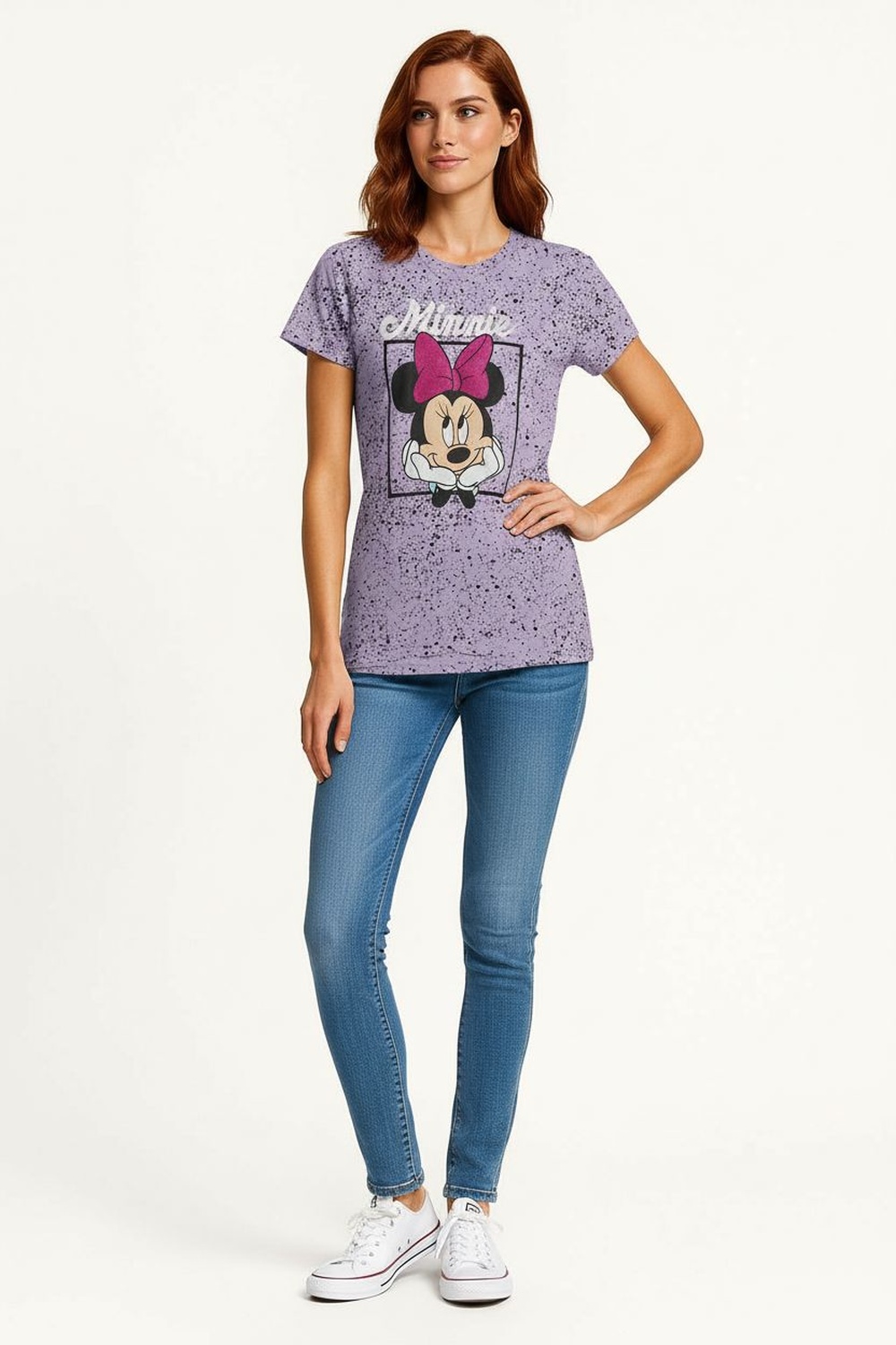 Playera de manga corta con cuello redondo clásico, diseño frontal con aplicación gráfica de personaje reconocido, corte recto que se adapta al cuerpo, largo a la cadera con terminación recta, confección en tejido suave al tacto que brinda comodidad durante todo el día