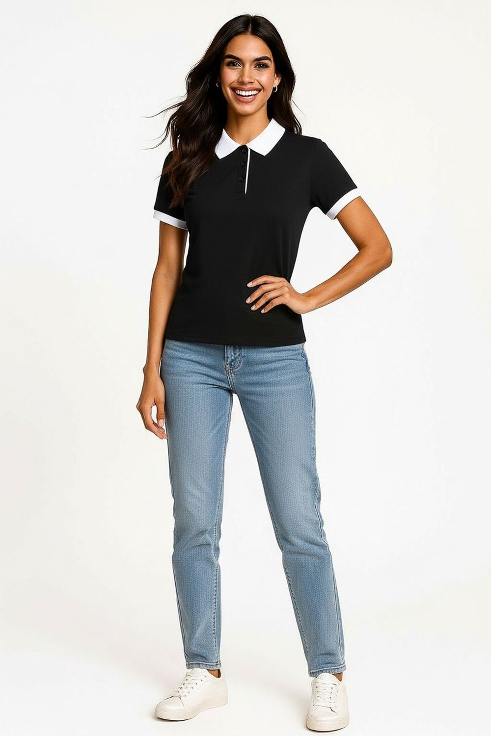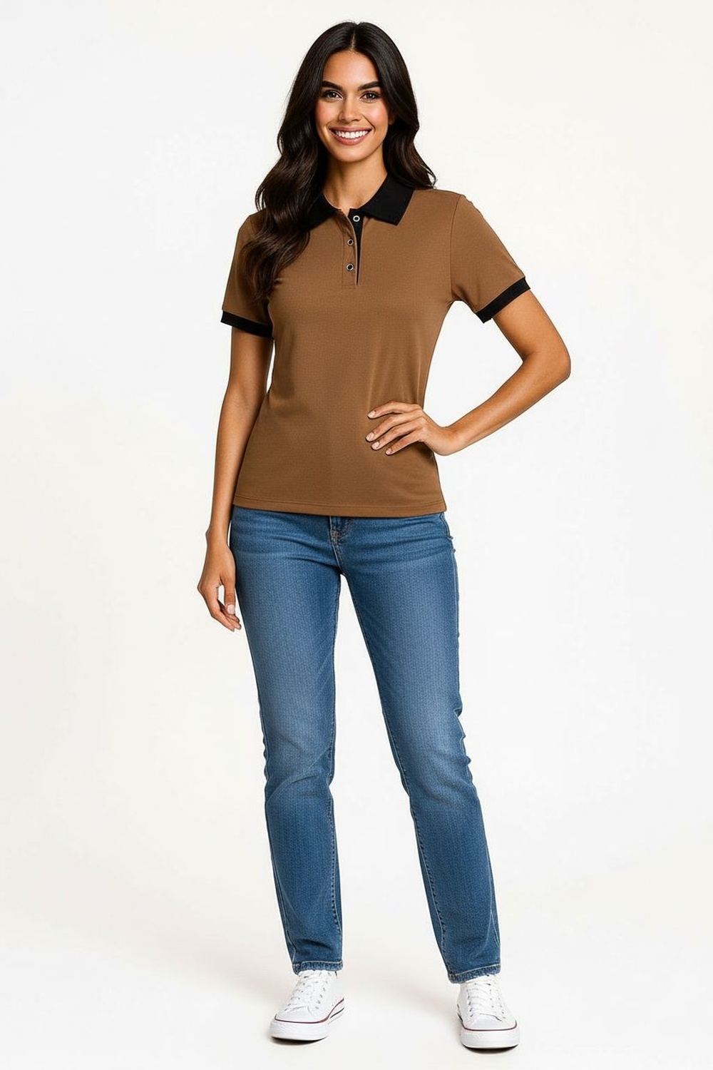 Playera tipo polo con cuello contrastante y tapeta frontal con botones funcionales, manga corta con terminación precisa, corte recto que brinda comodidad, confección suave con buena estabilidad dimensional