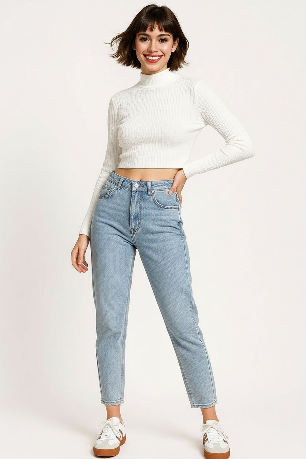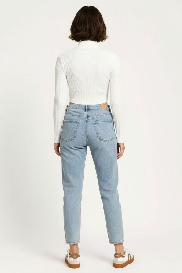 Suéter calado de manga larga confeccionado en tejido de viscosa ligero que brinda suavidad y frescura, cuello semi alto que aporta un toque moderno, diseño con textura abierta que realza su estilo casual, corte corto con ajuste cómodo que se adapta a la figura conservando movilidad y ligereza