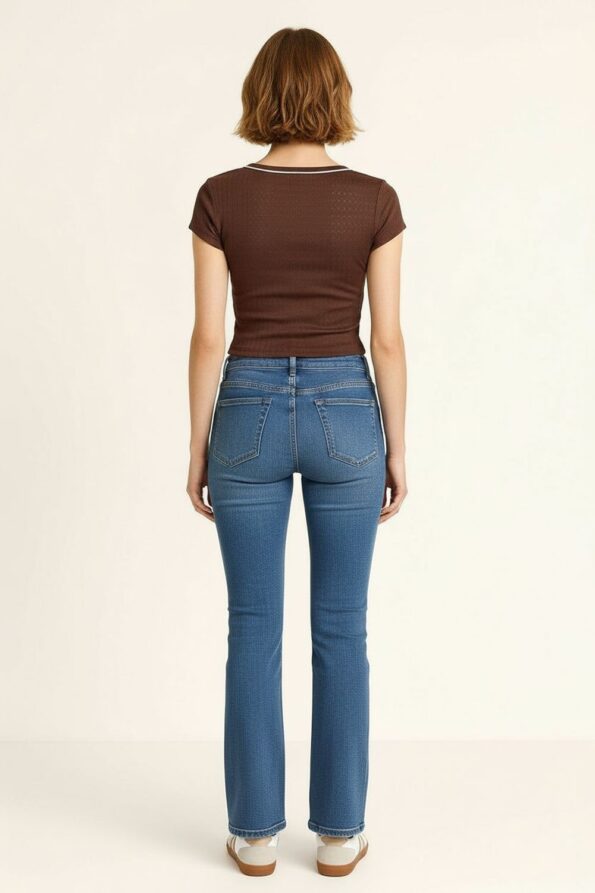 Playera de tejido rib con silueta desahujada que proporciona comodidad y frescura, escote redondo decorado con bies en contraste que resalta el diseño, manga corta con caída natural que favorece la movilidad, confección ligera y elástica que se adapta suavemente al cuerpo y realza la figura