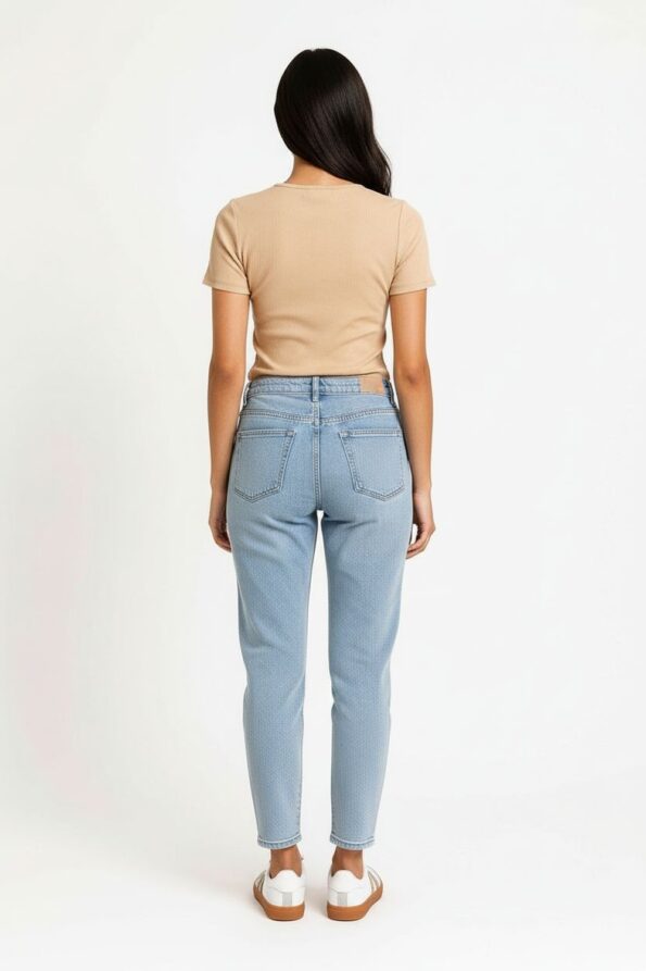 Chamarra de mezclilla con corte corto que define la cintura y resalta la figura, cierre de botones al frente que permite un ajuste práctico y moderno, bolsillos decorativos que añaden estilo funcional, terminado deshilado que aporta un toque juvenil y contemporáneo