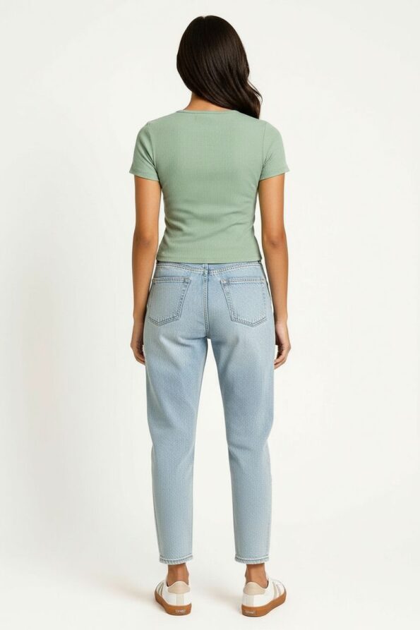 Playera de tejido rib con corte corto que realza la figura y brinda comodidad, escote redondo con terminación pulida que enmarca el cuello de forma sutil, manga corta con ajuste ceñido que favorece la movilidad, confección ligera y elástica que garantiza frescura y suavidad al contacto con la piel