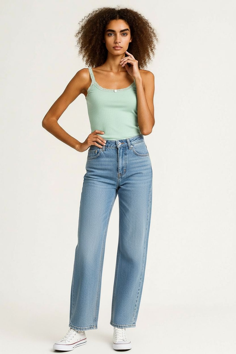 Playera rib con tirantes, escote redondo con encaje, textura acanalada, ajuste al cuerpo, terminación recta