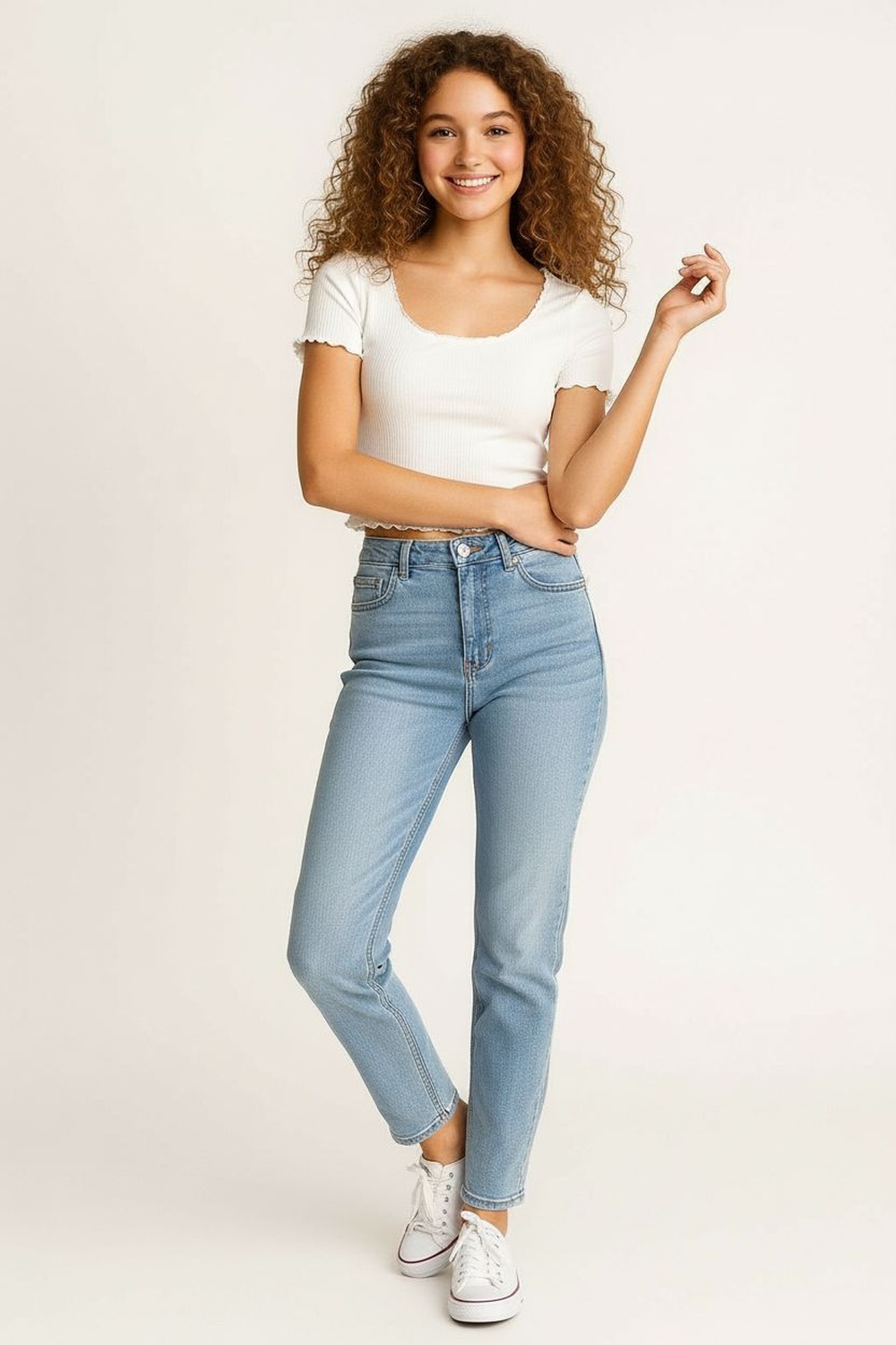 Playera de tejido rib con escote amplio y manga corta, corte básico ligeramente ajustado que se adapta a la silueta, acabado ondulado en mangas y bajo que añade detalle sutil, textura acanalada que ofrece elasticidad y confort, largo a la cintura que facilita su uso diario