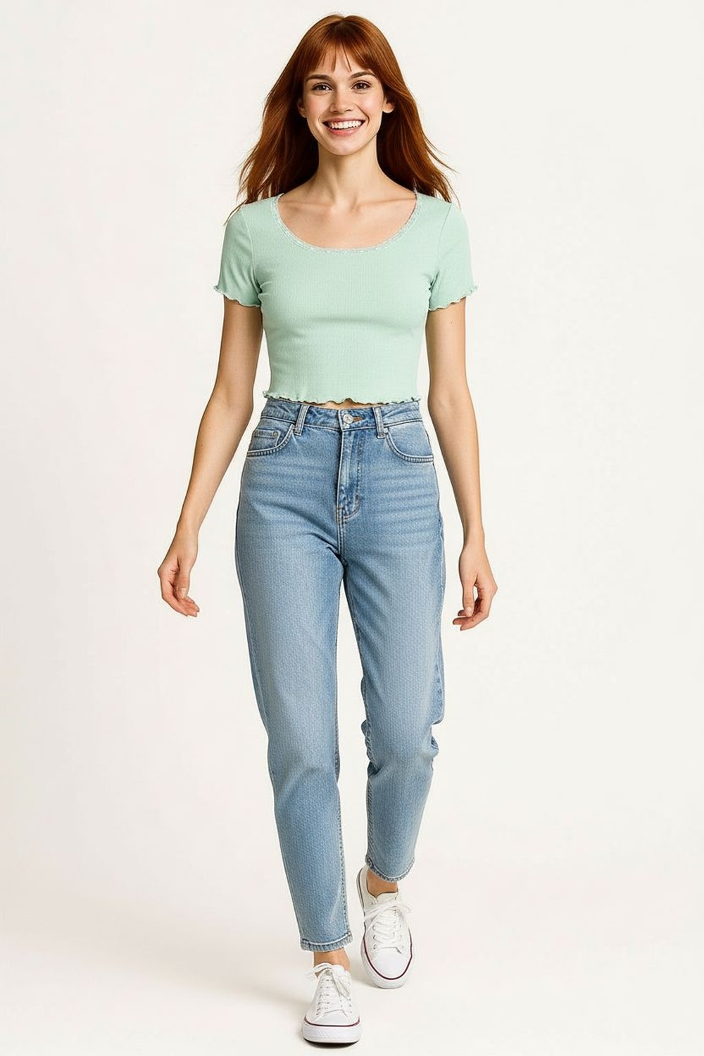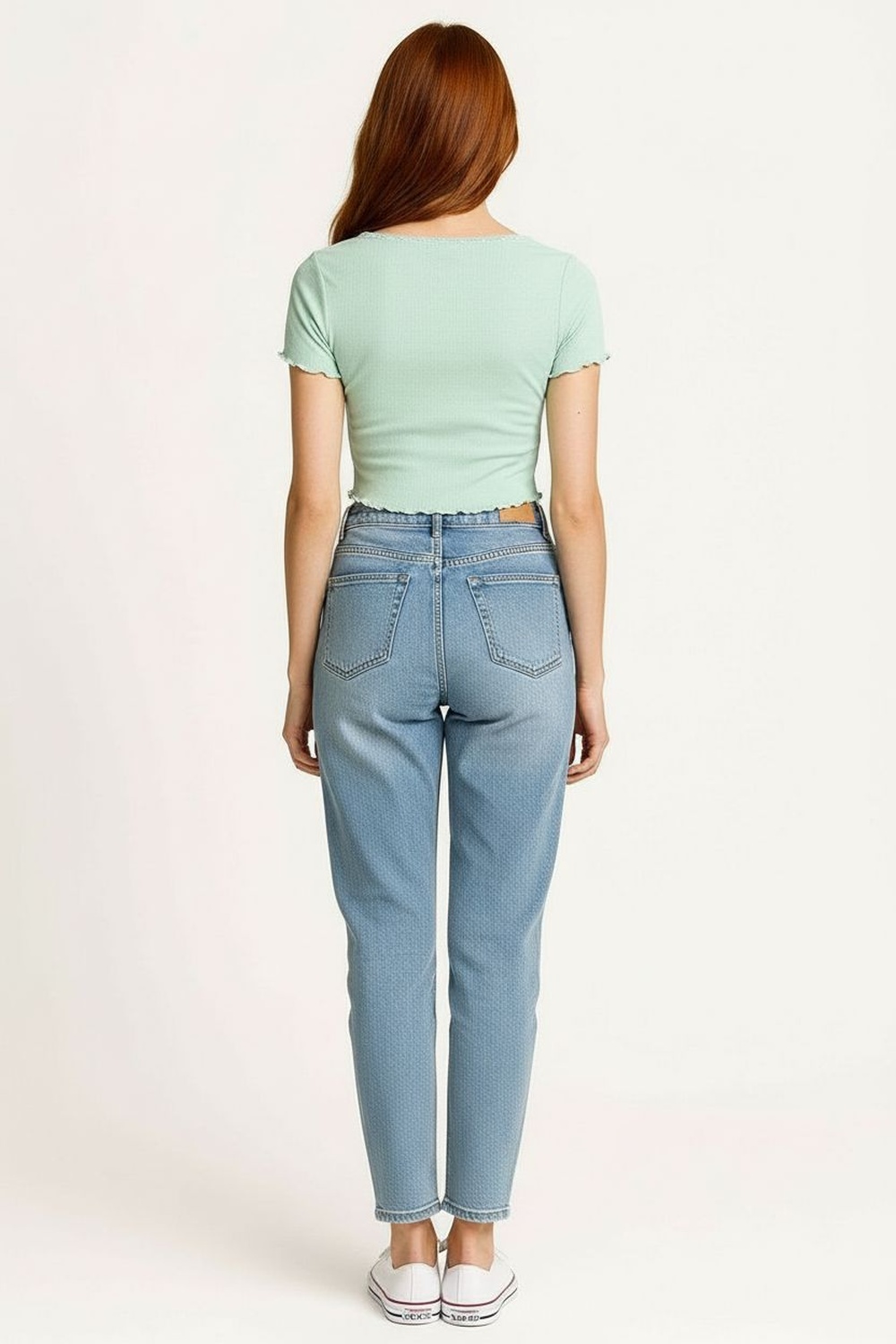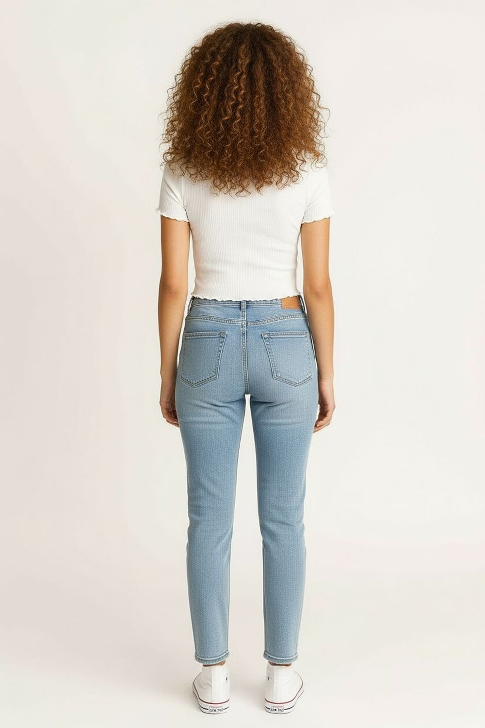 Pantalón skinny de tiro medio con pretina anatómica y cierre frontal con botón metálico, corte ajustado desde cadera hasta tobillo que estiliza la figura, diseño levanta pompa que realza la parte posterior, bolsillos funcionales y trabillas para cinturón que aportan practicidad, mezclilla con elasticidad que facilita el movimiento y brinda ajuste cómodo