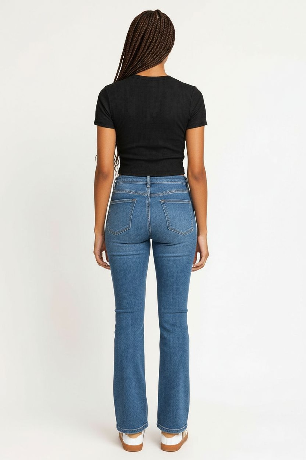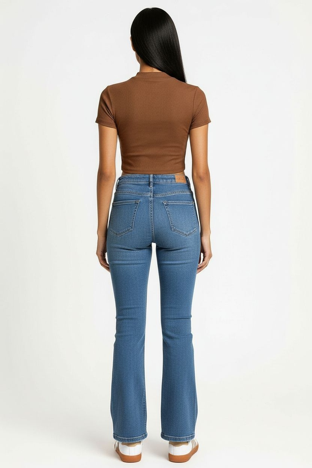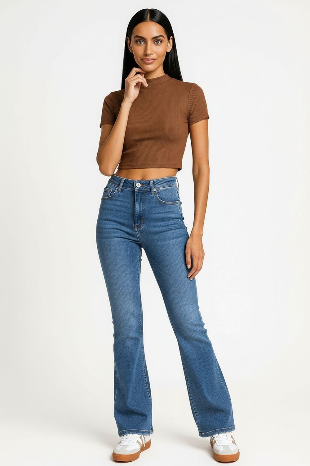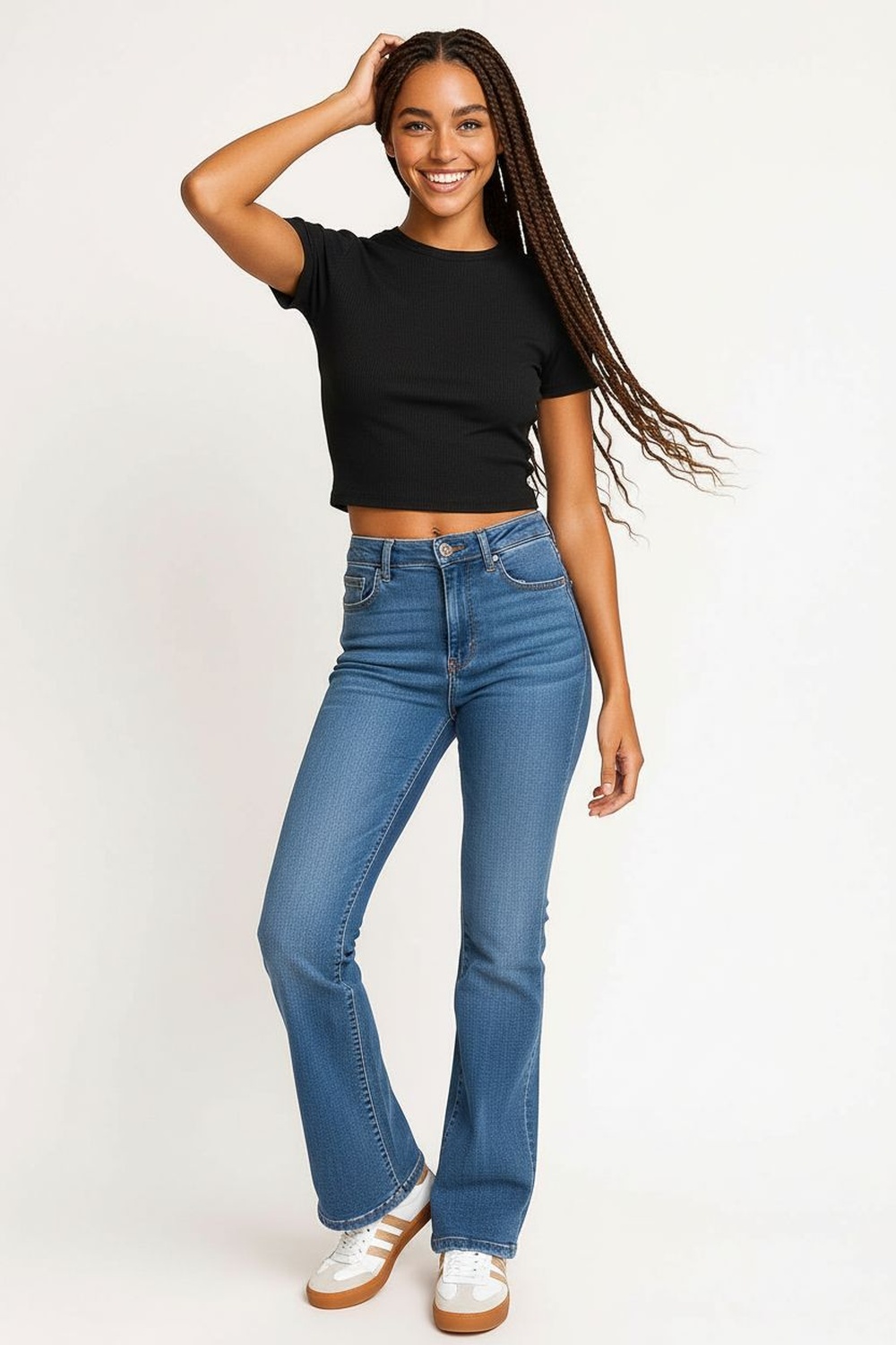 Playera de cuerpo corto confeccionada en tela acanalada con doble grosor que aporta estructura y comodidad, cuello redondo y mangas cortas con acabado limpio que realzan el diseño minimalista