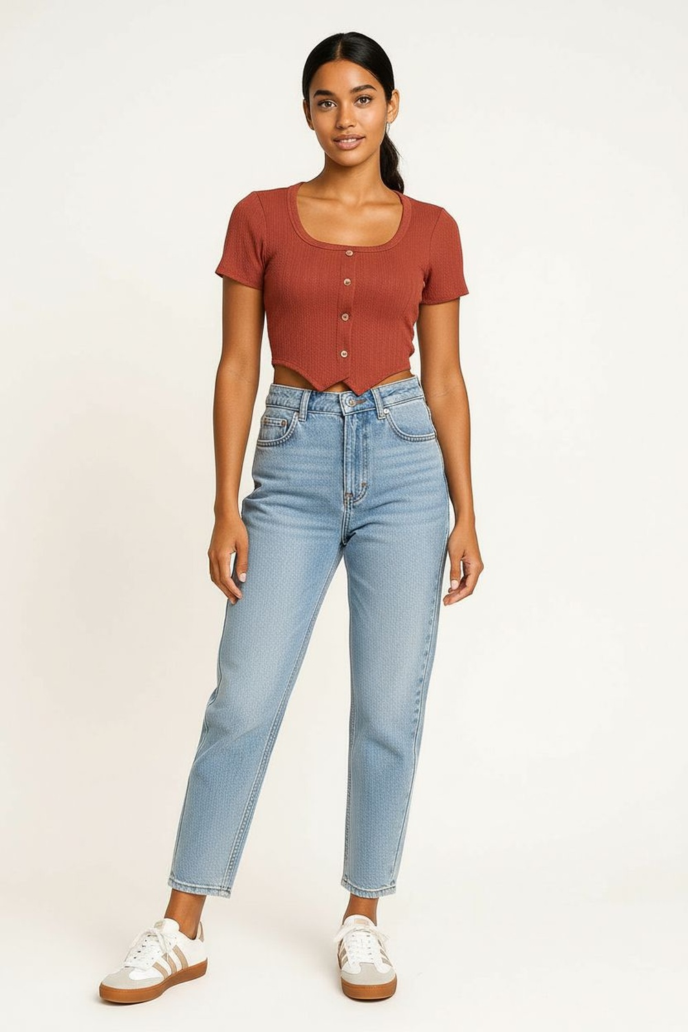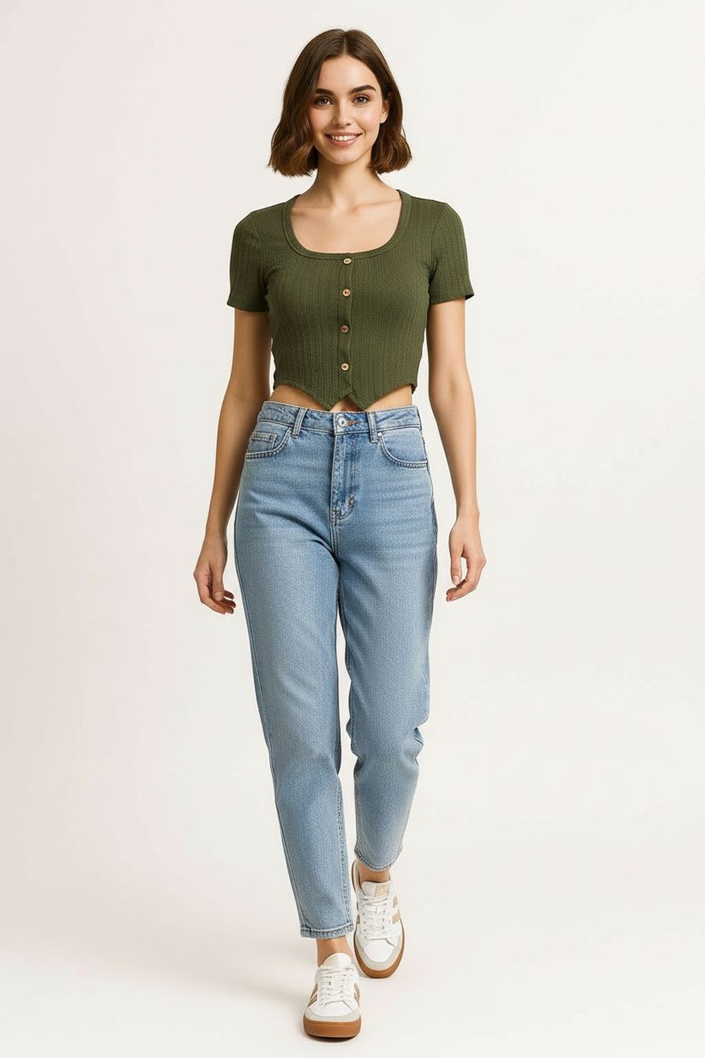 PLAYERA RIB CROP CON BOTONES