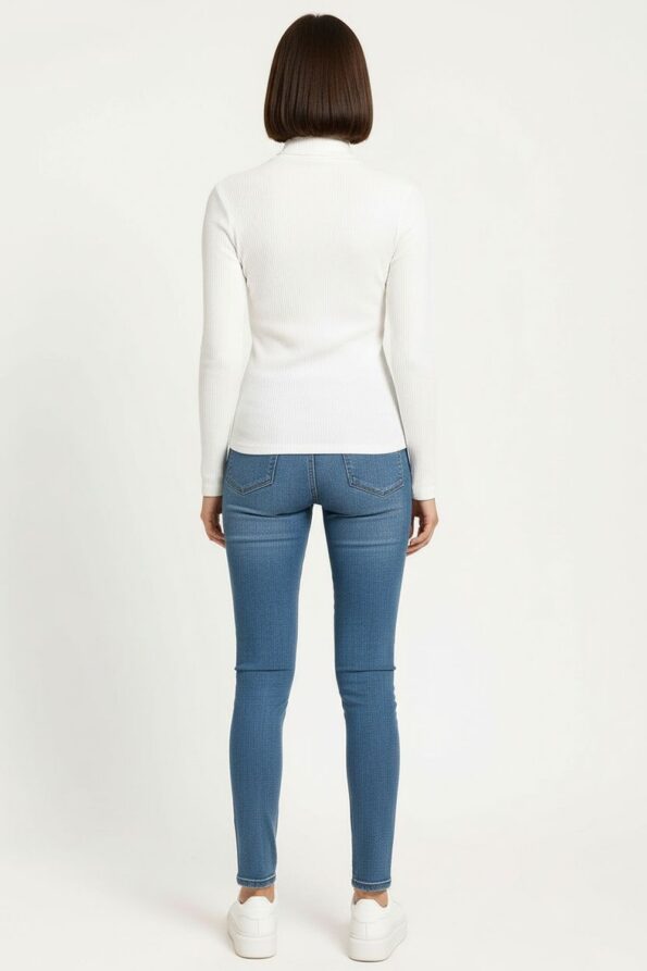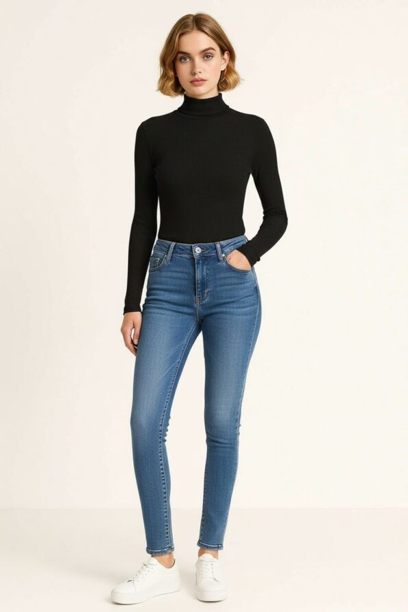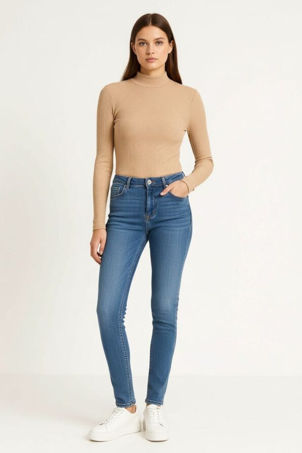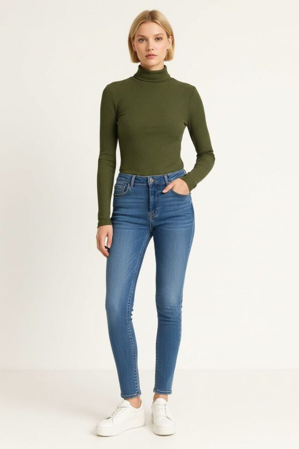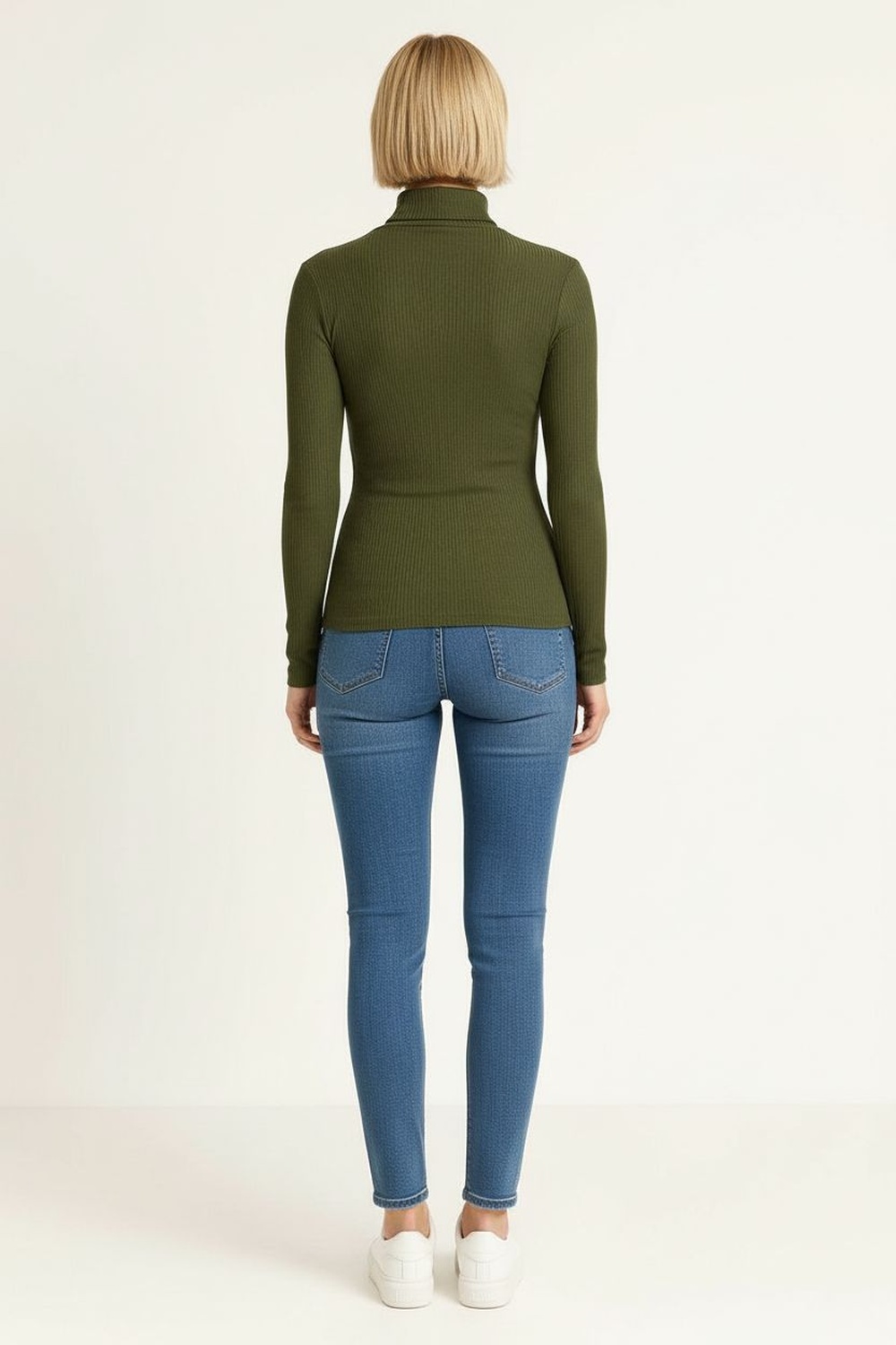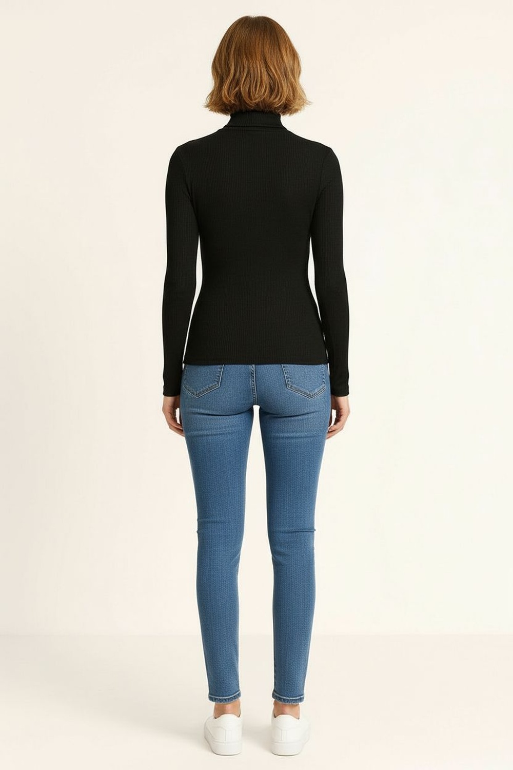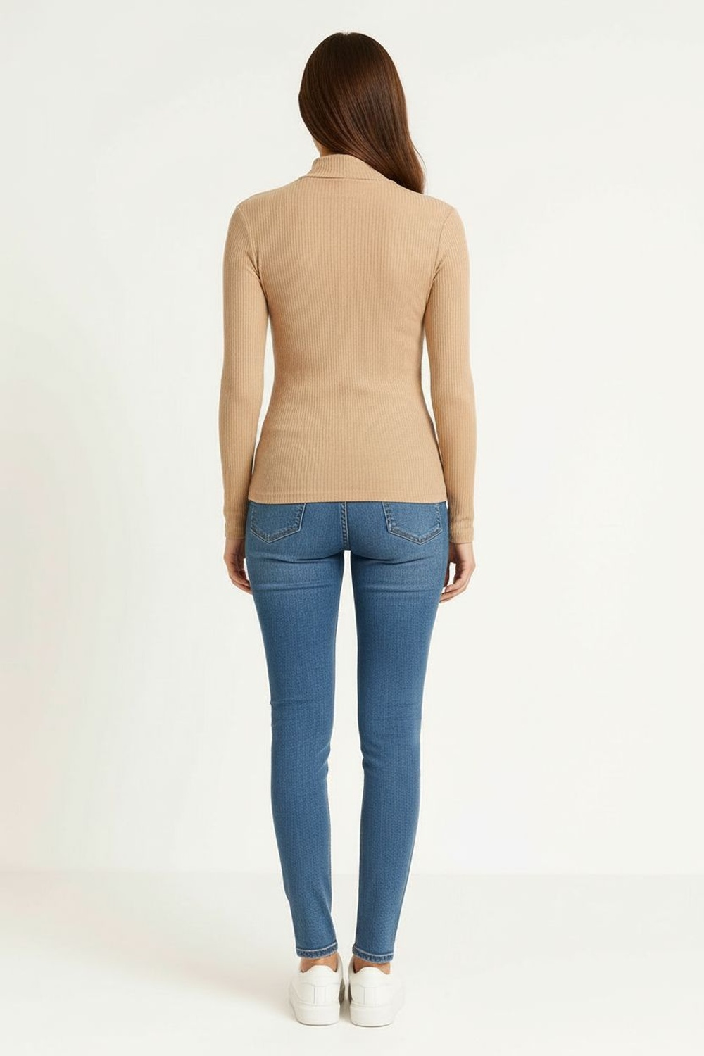 Playera de manga larga confeccionada en tejido rib que se ajusta suavemente a la silueta, cuello alto que brinda un look estilizado y mayor protección, corte recto a la cadera que favorece diferentes tipos de cuerpo, diseño liso que aporta versatilidad para múltiples combinaciones, material elástico y ligero que asegura comodidad y libertad de movimiento en todo momento