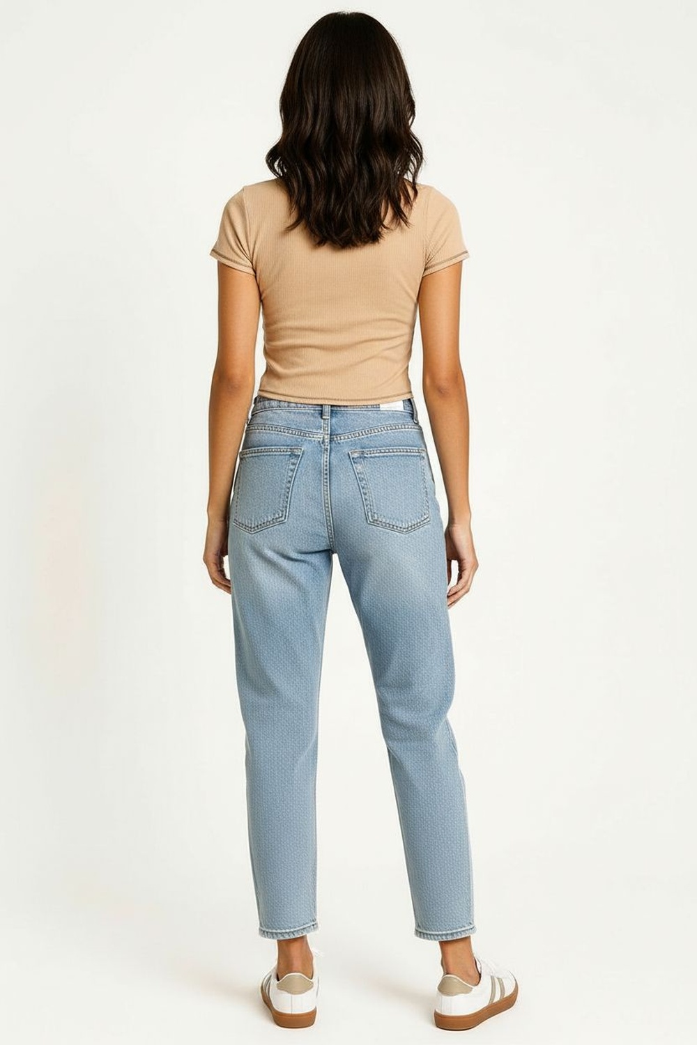 Mallón con pretina ancha y botones decorativos, diseño de pierna recta con caída natural, confección en tejido elástico que ofrece ajuste cómodo y favorecedor