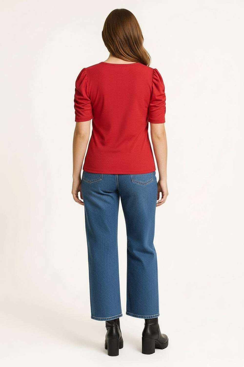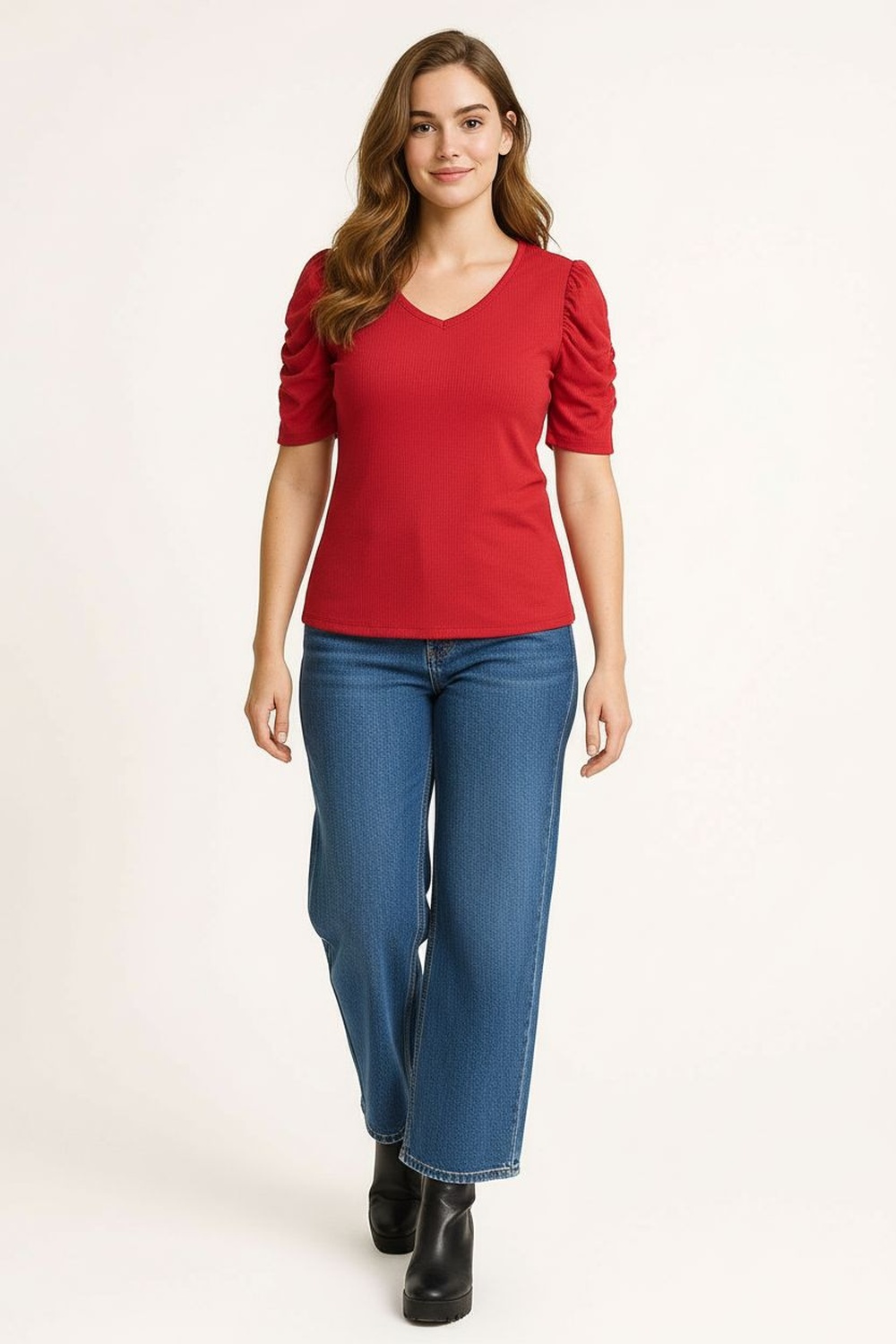 Playera rib manga corta escote en v manga con volumen silueta recta tejido de punto terminación recta confección cómoda