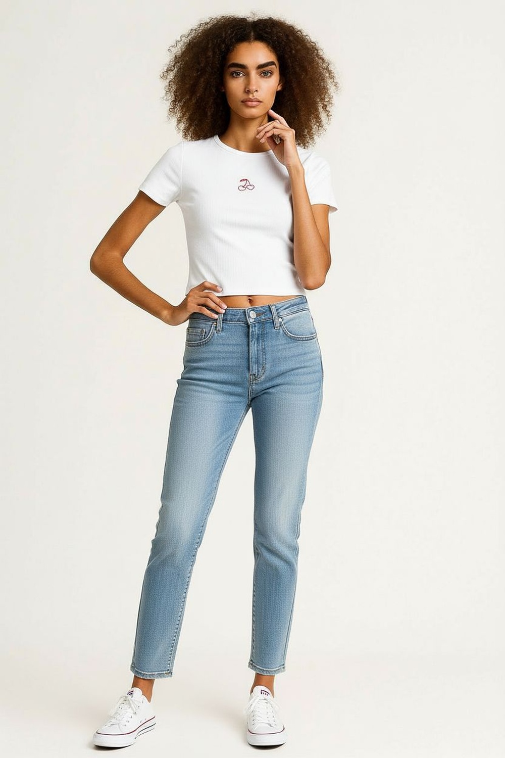Jeans de tiro medio con pretina anatómica y cierre frontal, corte ajustado desde cadera hasta tobillo que define la silueta, confección en mezclilla con elasticidad para mayor confort, bolsillos funcionales delanteros y traseros, largo completo con ajuste preciso