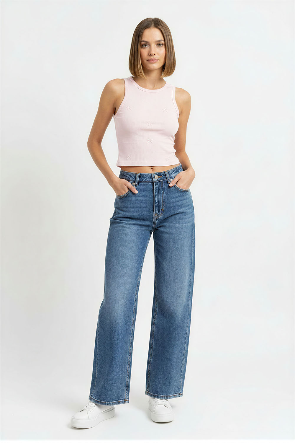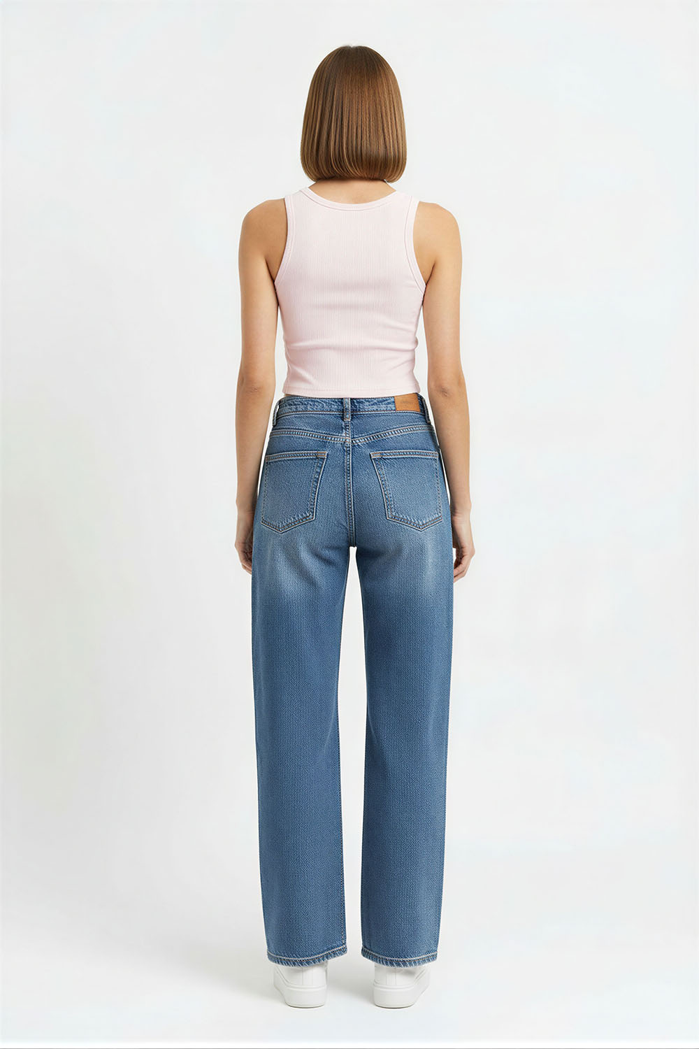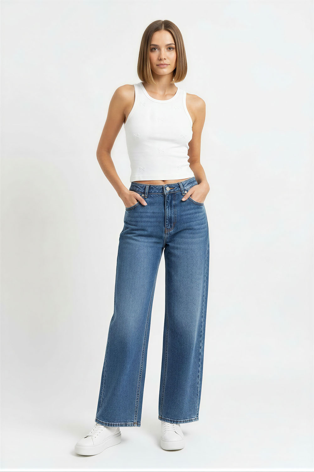 Pantalón de tiro alto con pretina elástica que brinda ajuste cómodo y adaptable, silueta amplia de pierna recta que favorece la movilidad y aporta fluidez, incluye cinturón integrado con hebilla que define la cintura, diseño con caída relajada que estiliza la figura, confección en tejido ligero de textura suave que permite transpirabilidad y confort prolongado
