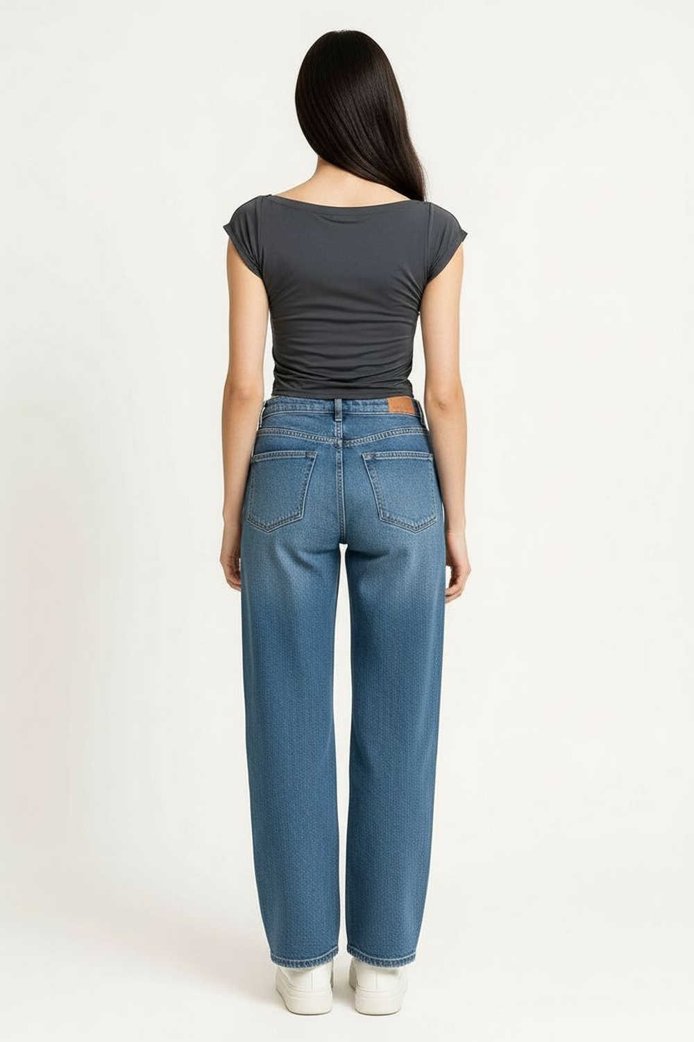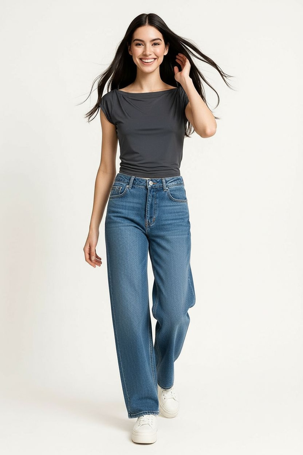 Jeans de tiro medio, pretina amplia con botonadura frontal, bolsillos funcionales, corte skinny que se ajusta a la silueta, confección flexible de movimiento cómodo