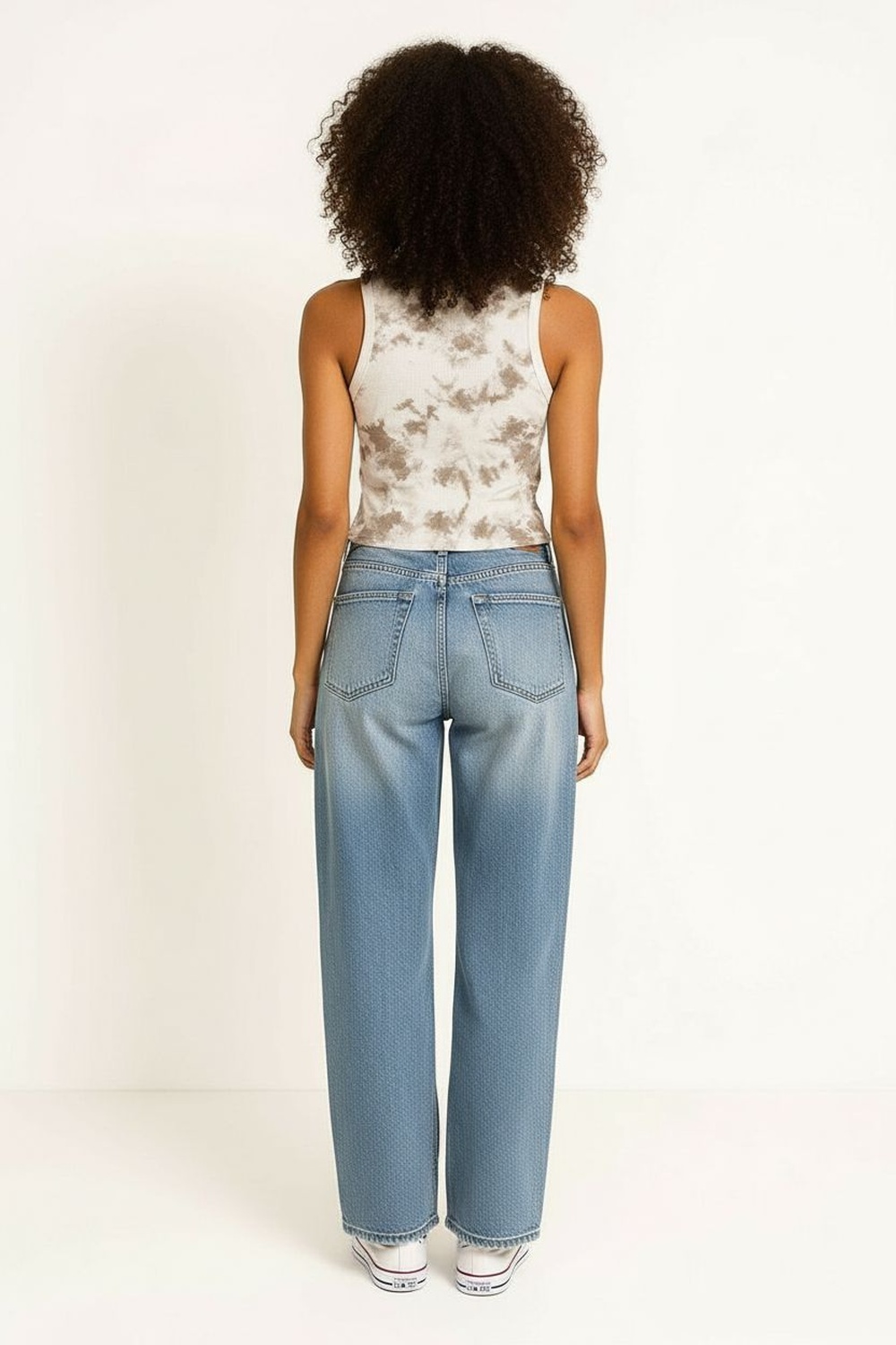 Playera sin mangas con cuello redondo, diseño de ajuste relajado, estructura ligera, textura uniforme, terminaciones limpias